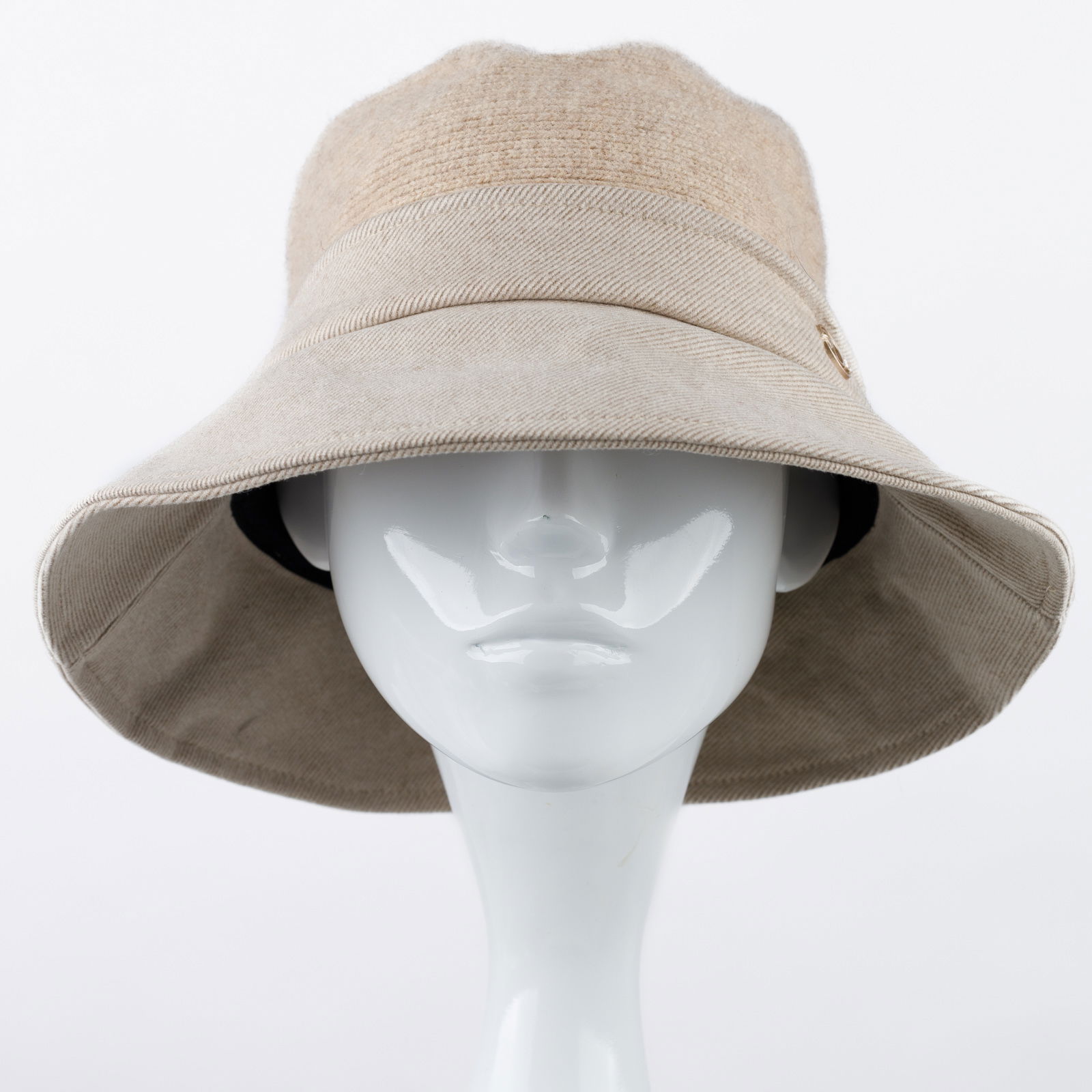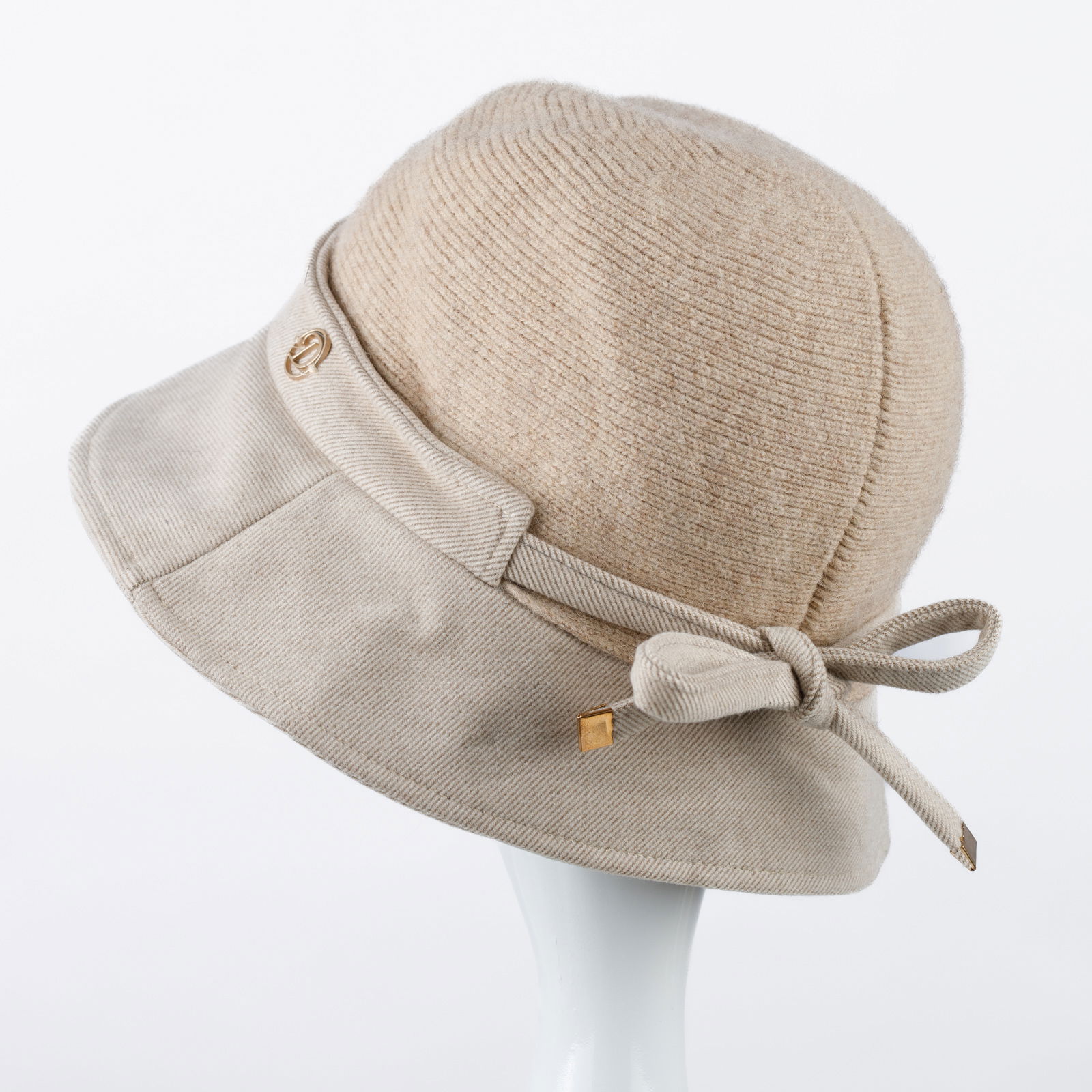Shopika Palarie flexibila de lana si stofa cu bor mic si funda la spate, bej
