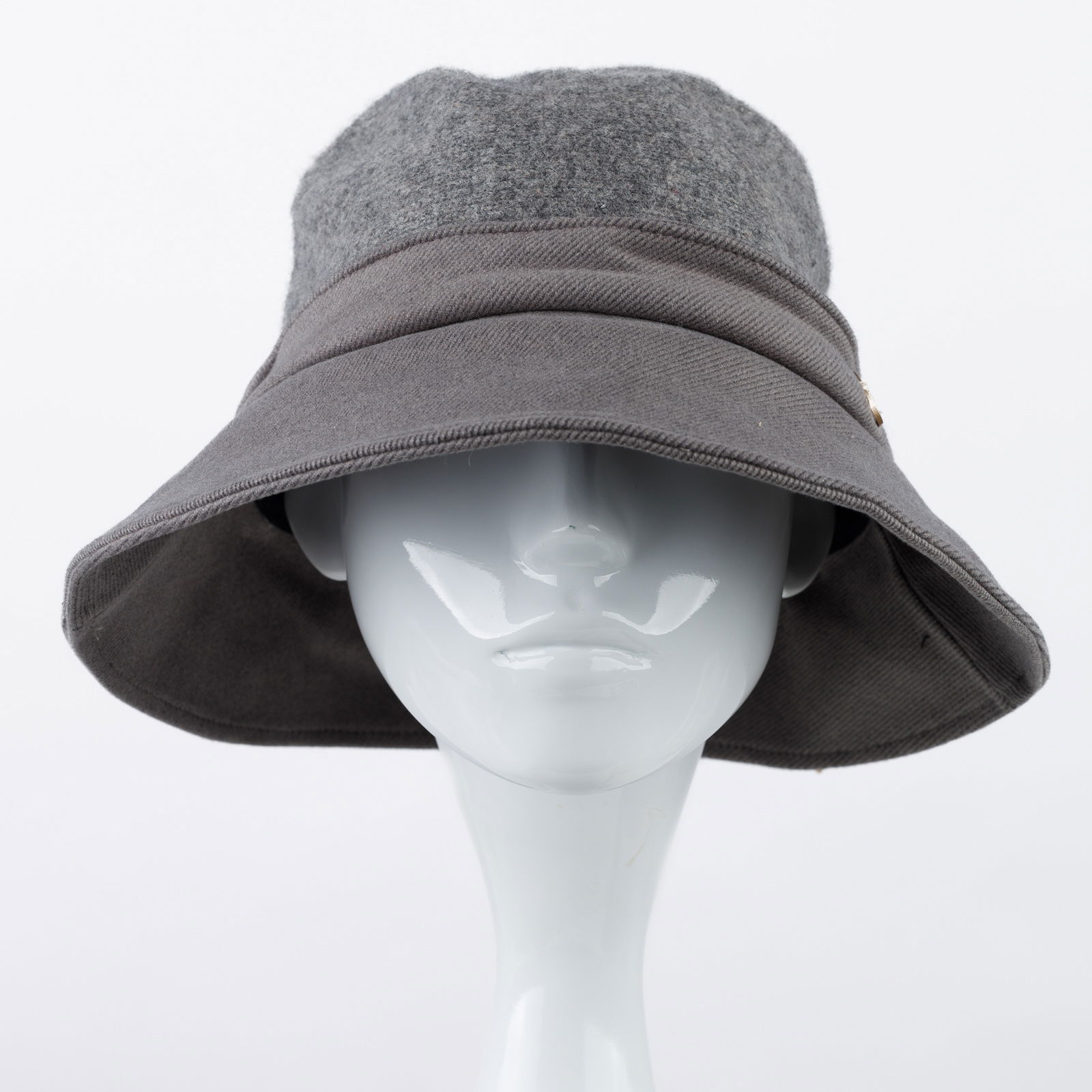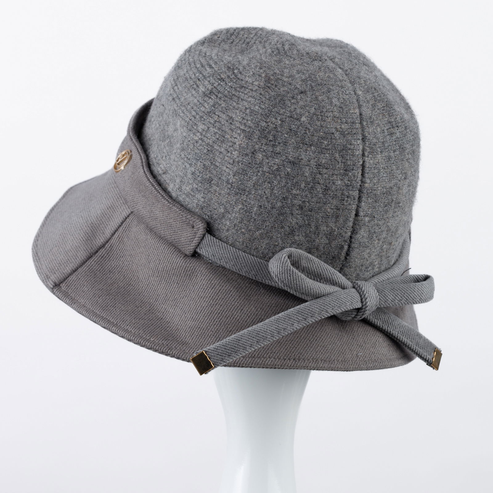 Shopika Palarie flexibila de lana si stofa cu bor mic si funda la spate, gri