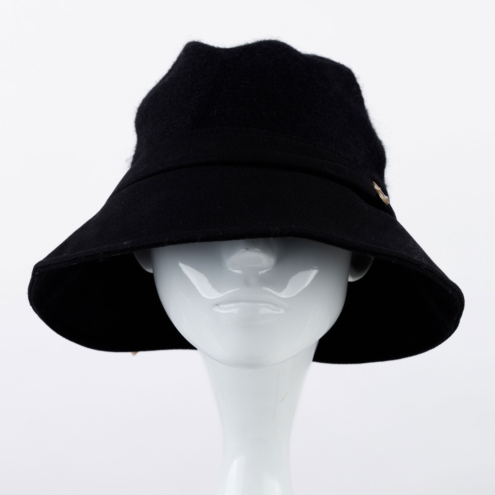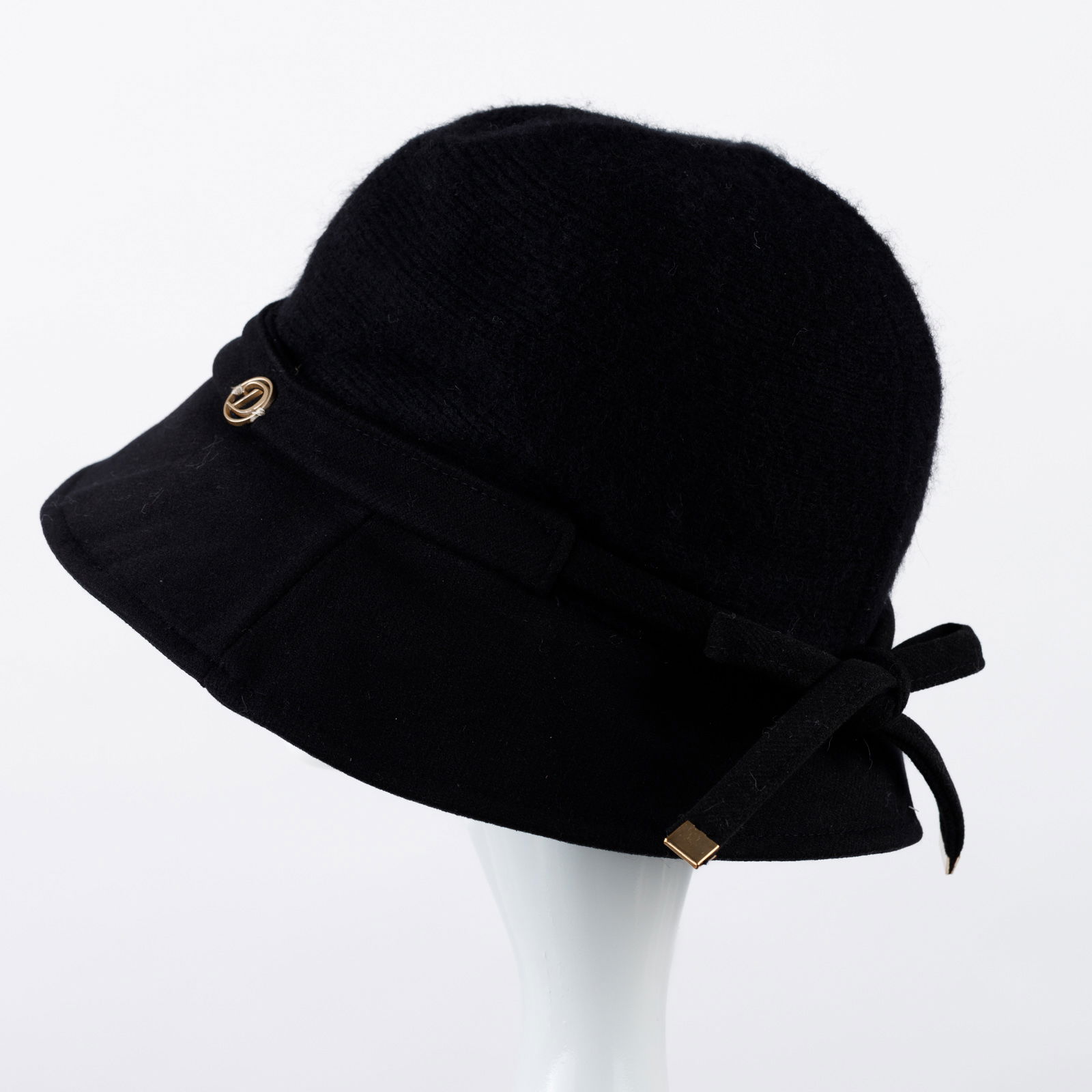 Shopika Palarie flexibila de lana si stofa cu bor mic si funda la spate, neagra