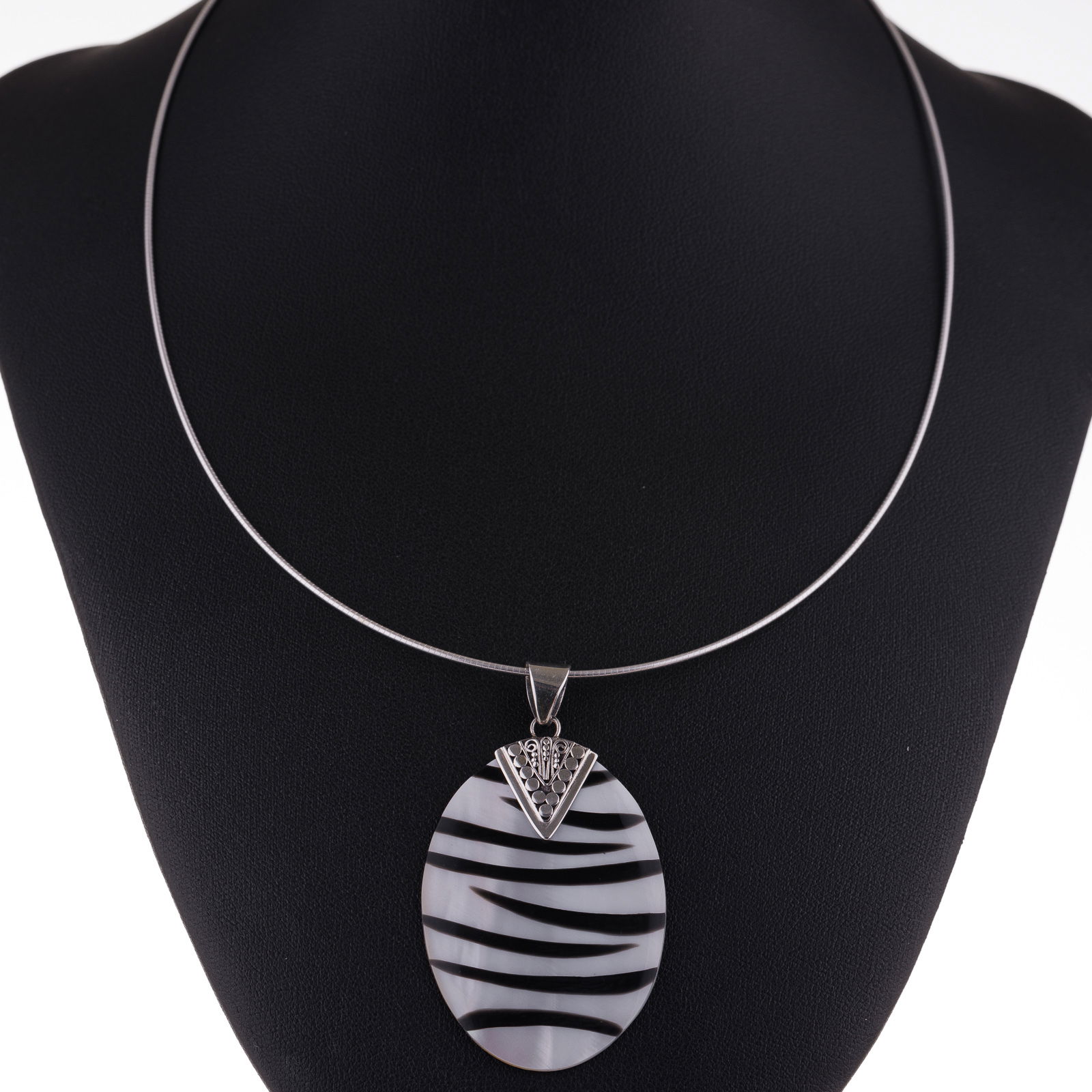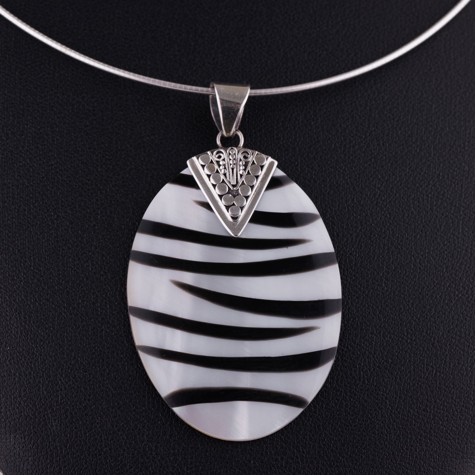 Shopika Pandant cu scoica naturala cu negru si decoratiune din argint 925