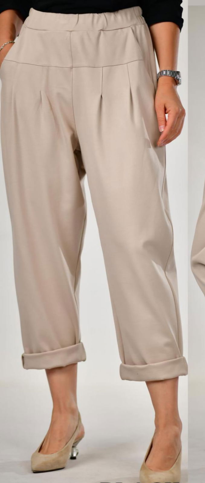 O reinterpretare moderna a pantalonilor lejeri, cu o croiala care imbina confortul absolut cu eleganta discreta. Talie elastica, cusaturi curate si pliuri atent construite pentru un plus de volum controlat — toate se combina intr-o piesa versatila, usor de purtat zi de zi. Mansetele rasucite adauga o nota relaxata, effortless-chic, iar materialul cu cadere fina confera o miscare frumoasa si o senzatie placuta pe piele. Ideali pentru outfituri smart-casual, pantofi cu toc mic sau chiar tinute minimaliste de weekend. Un pantalon premium, perfect pentru garderoba moderna.