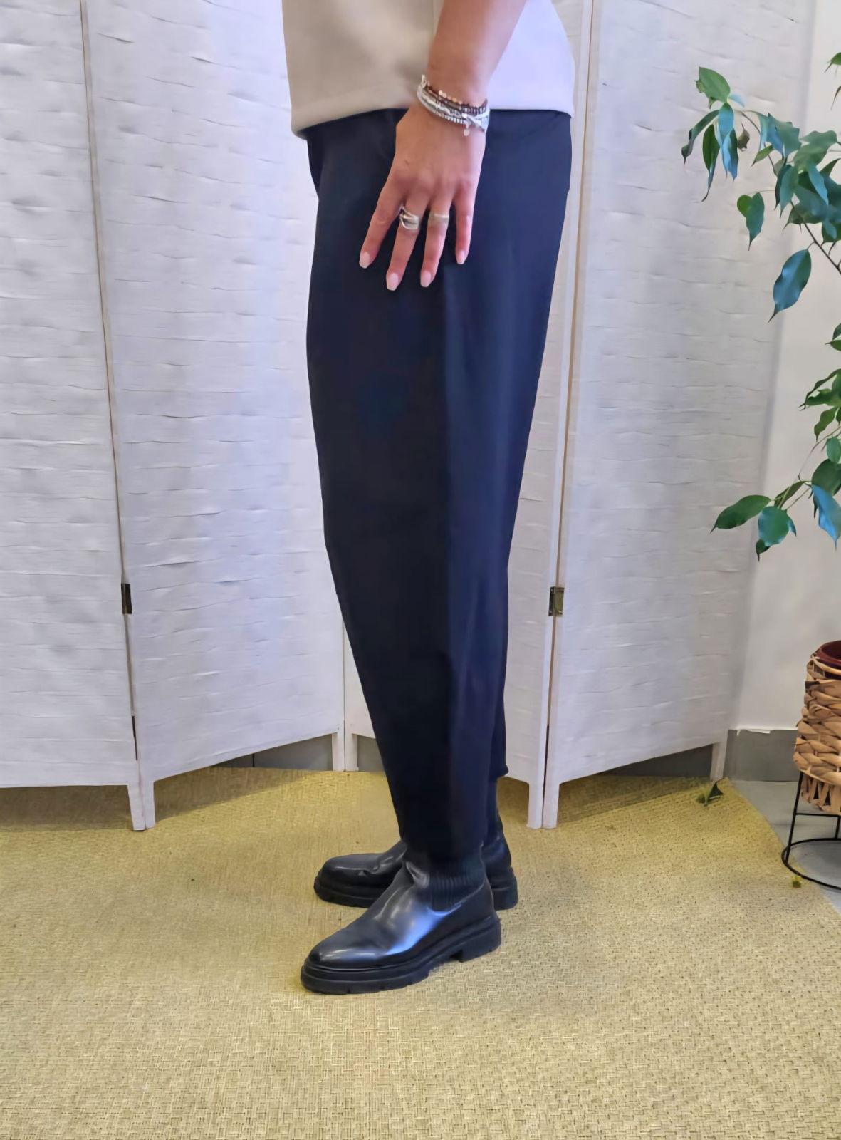 Pantaloni tip carrot intr-o nuanta versatila, cu volum in zona soldurilor si linie conica spre glezna, pentru o silueta moderna si alungita. Pensele frontale ofera lejeritate si structura, iar croiala sculptata avantajeaza atat tinutele lejere, cat si pe cele smart-casual. Confortabili, usor de purtat zi de zi, se potrivesc excelent cu camasi, pulovere scurte sau topuri oversized. O piesa contemporana, ideala pentru garderoba urbana.