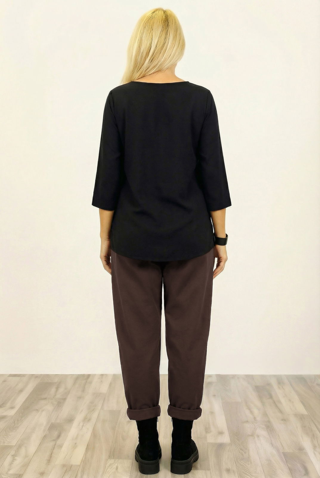 Pantaloni cu croiala lejer-bufanta, realizati din material fluid, perfecti pentru tinute moderne si confortabile. Conceputi pentru confort si un efect vizual distinctiv, pantalonii au o croiala lata si conica pe picioare.