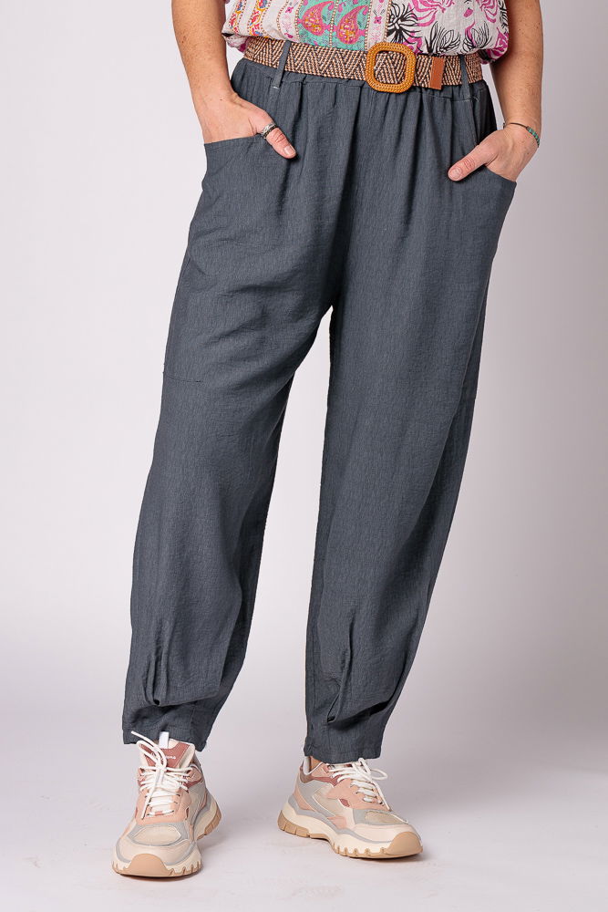 Pantaloni gri, masura mare, cu curea, din vascoza
