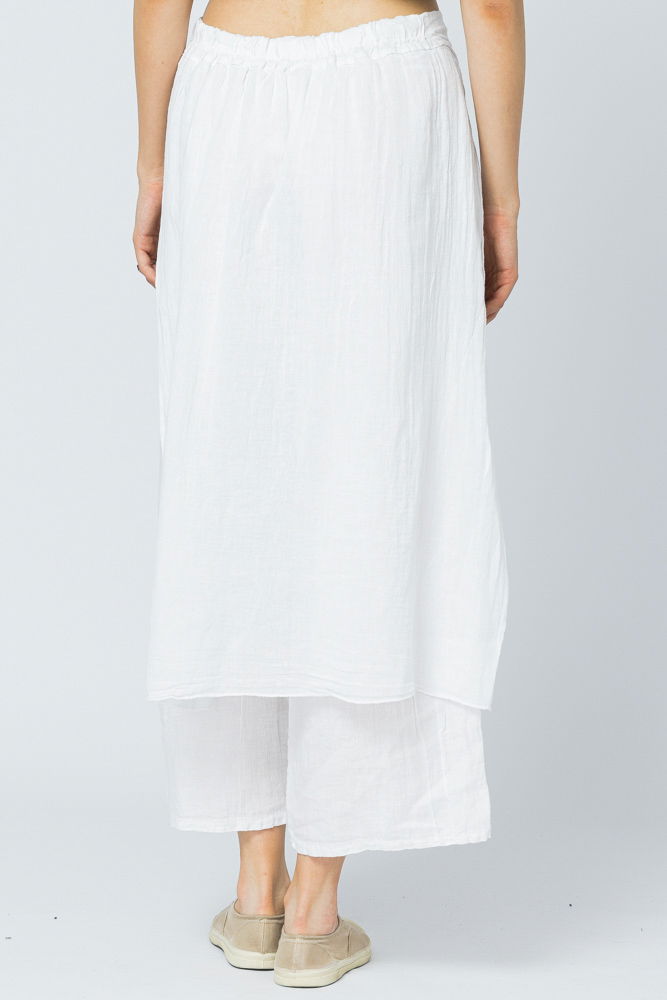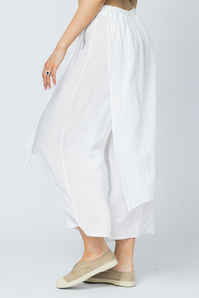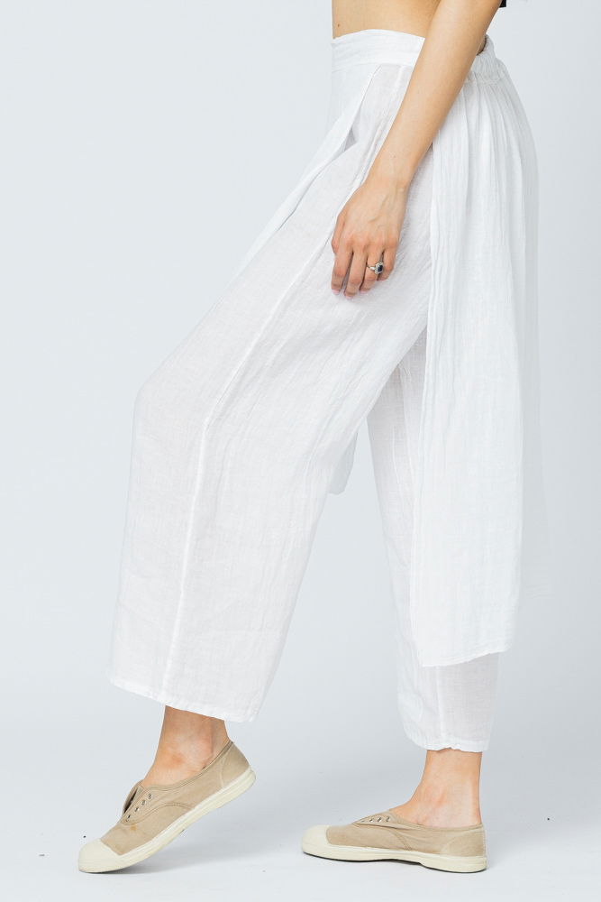 Shopika Pantaloni de vara din in, cu aplicatii pe fata si spate, albi