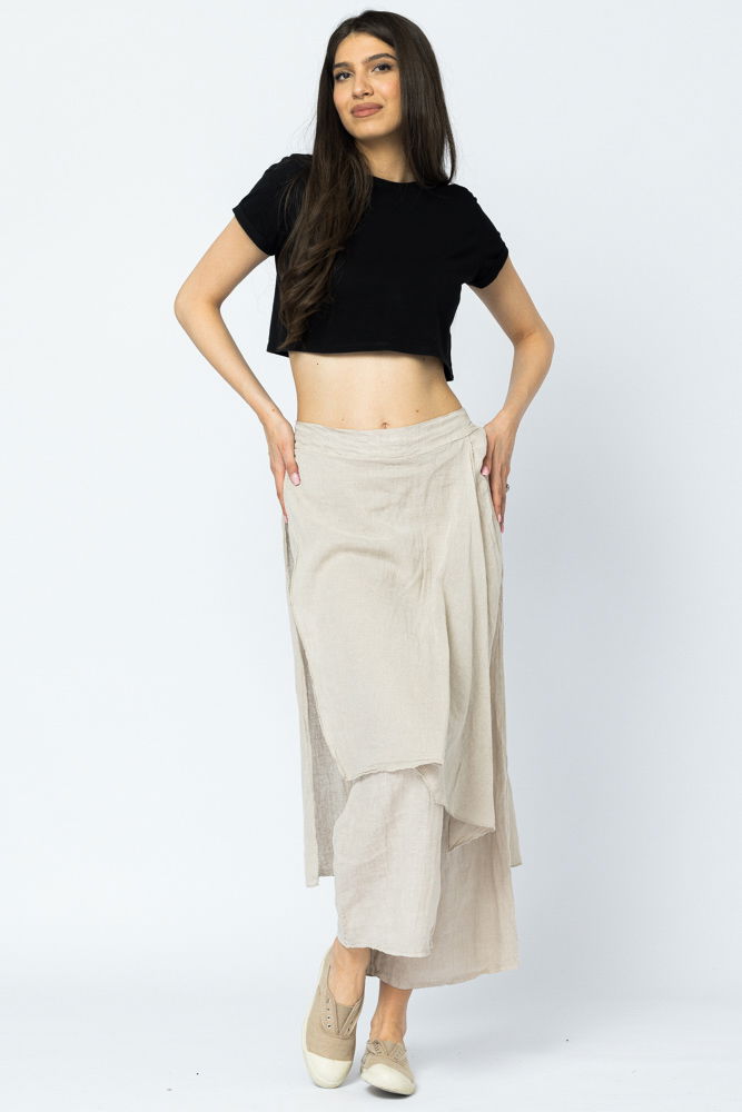 Pantalonii fancy de vară cu o croială lejeră, din in, oferă confort și libertate de mișcare, fiind potriviți pentru a fi purtați în ținute casual alături de diverse bluze și cămăși. Unul dintre avantajele inului este capacitatea sa de a absorbi apa și de a se usca rapid, ceea ce permite pielii să respire ușor, mai ales în timpul sezonului cald. Materialul din in este subțire și ușor si purtandu-i veți experimenta confort și un look relaxat.
