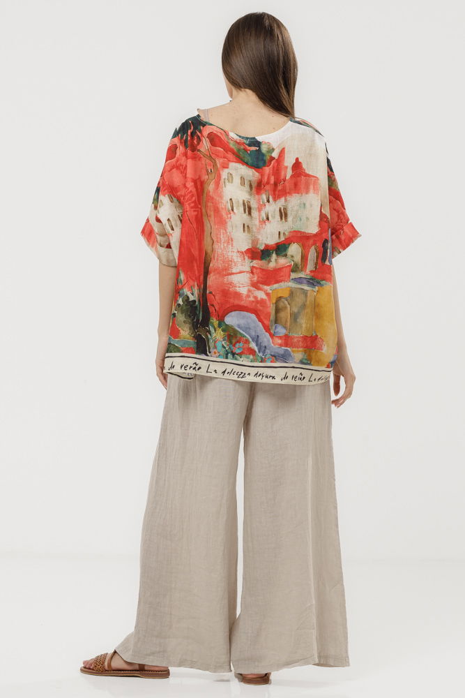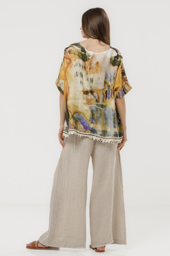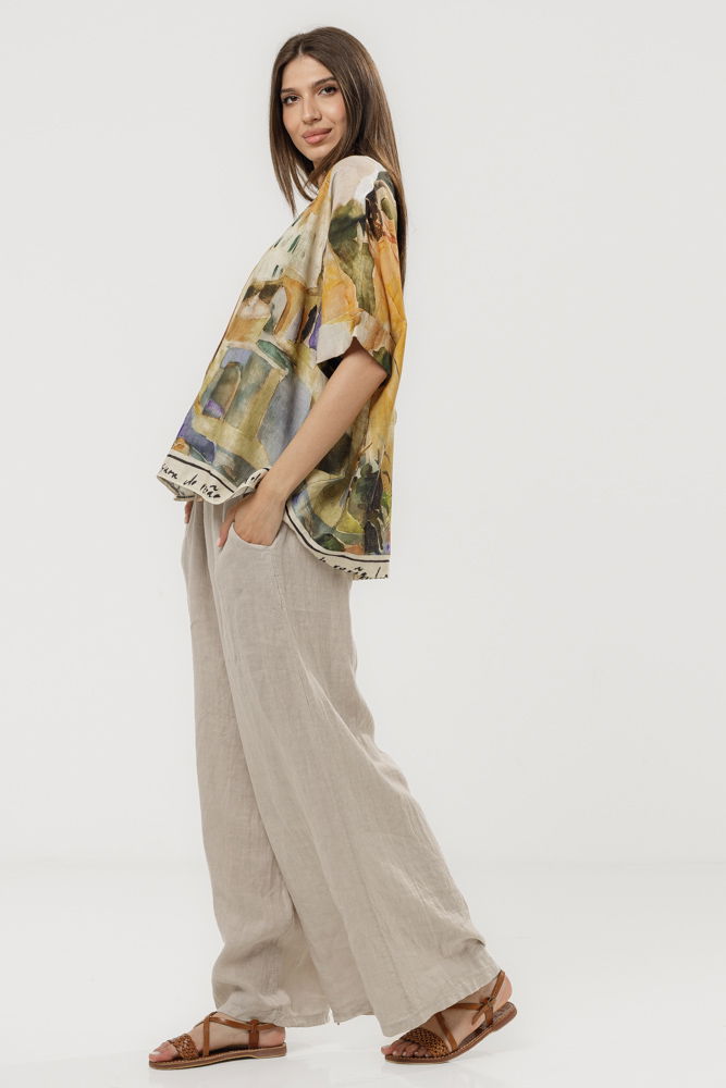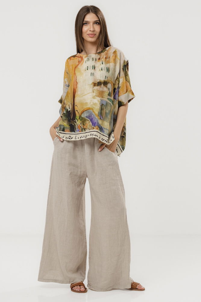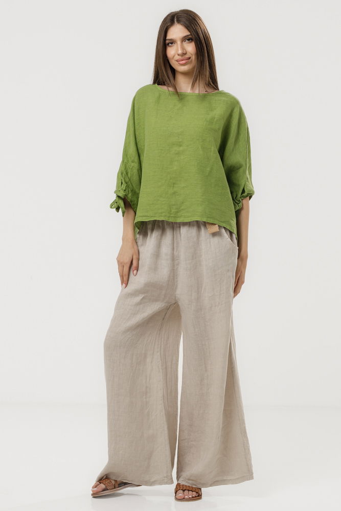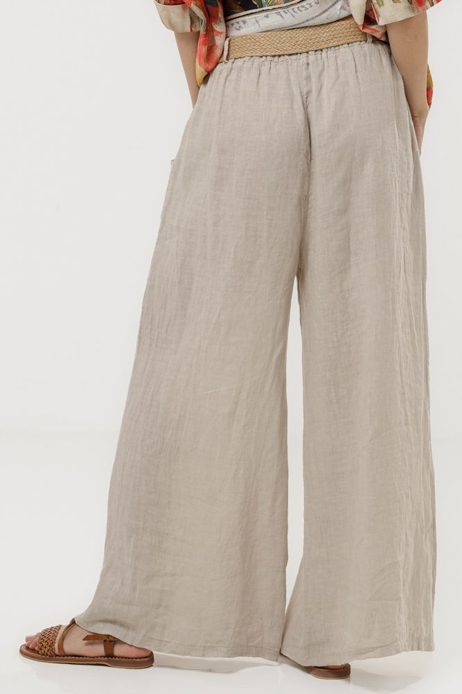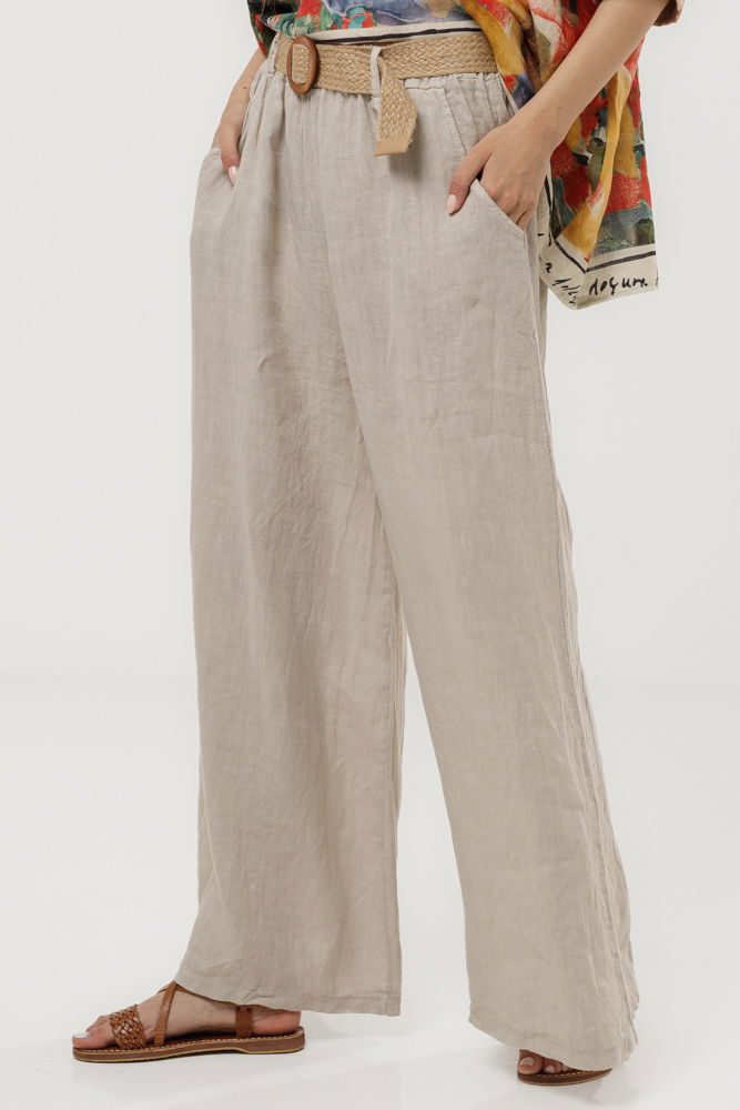 Pantaloni lejeri din in 100% natural, cu talie elastica si croi amplu pentru confort maxim. Accesorizati cu o curea decorativa din sfoara cu catarama, ideali pentru tinute casual de vara sau vacanta.