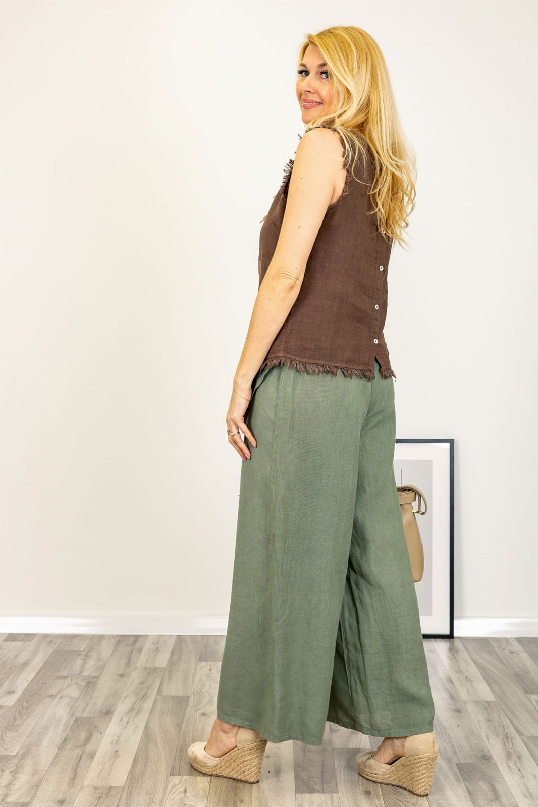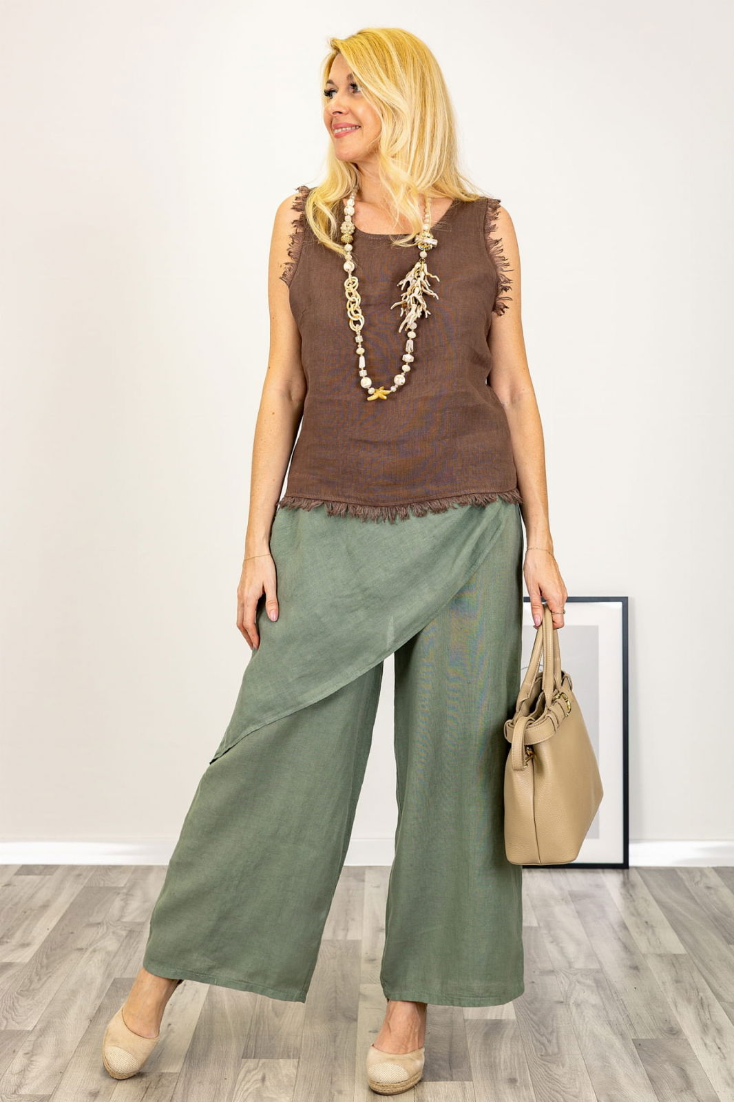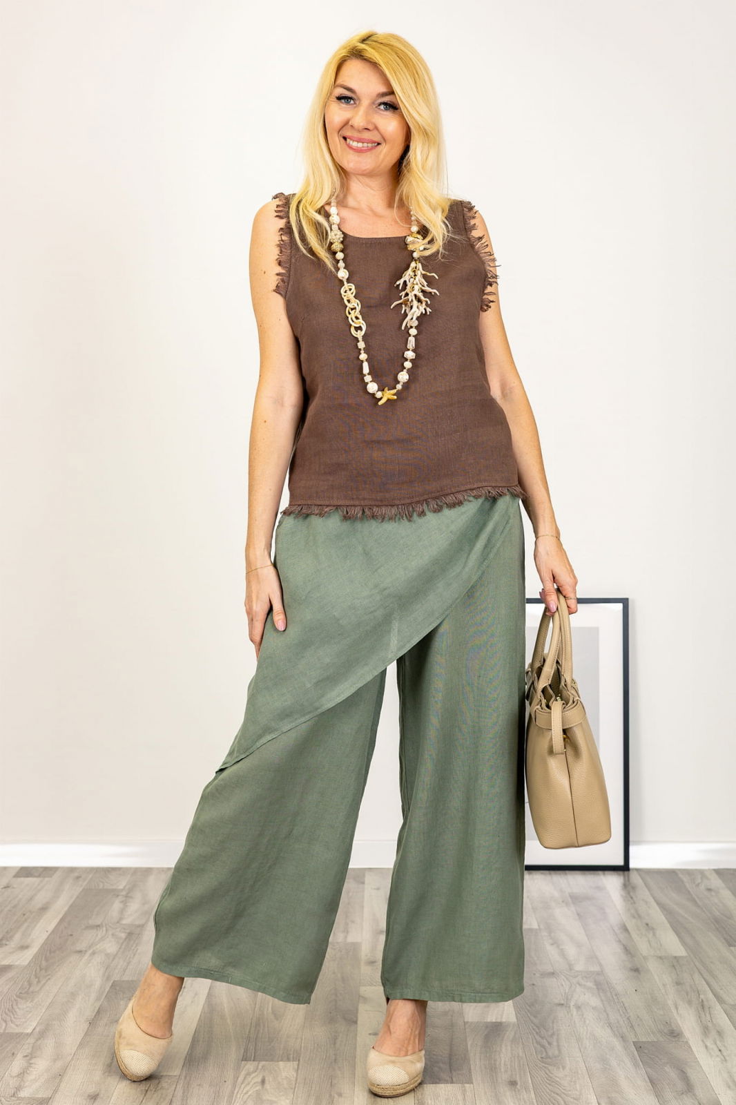 Pantaloni din in cu parte petrecuta – confort si stil relaxat