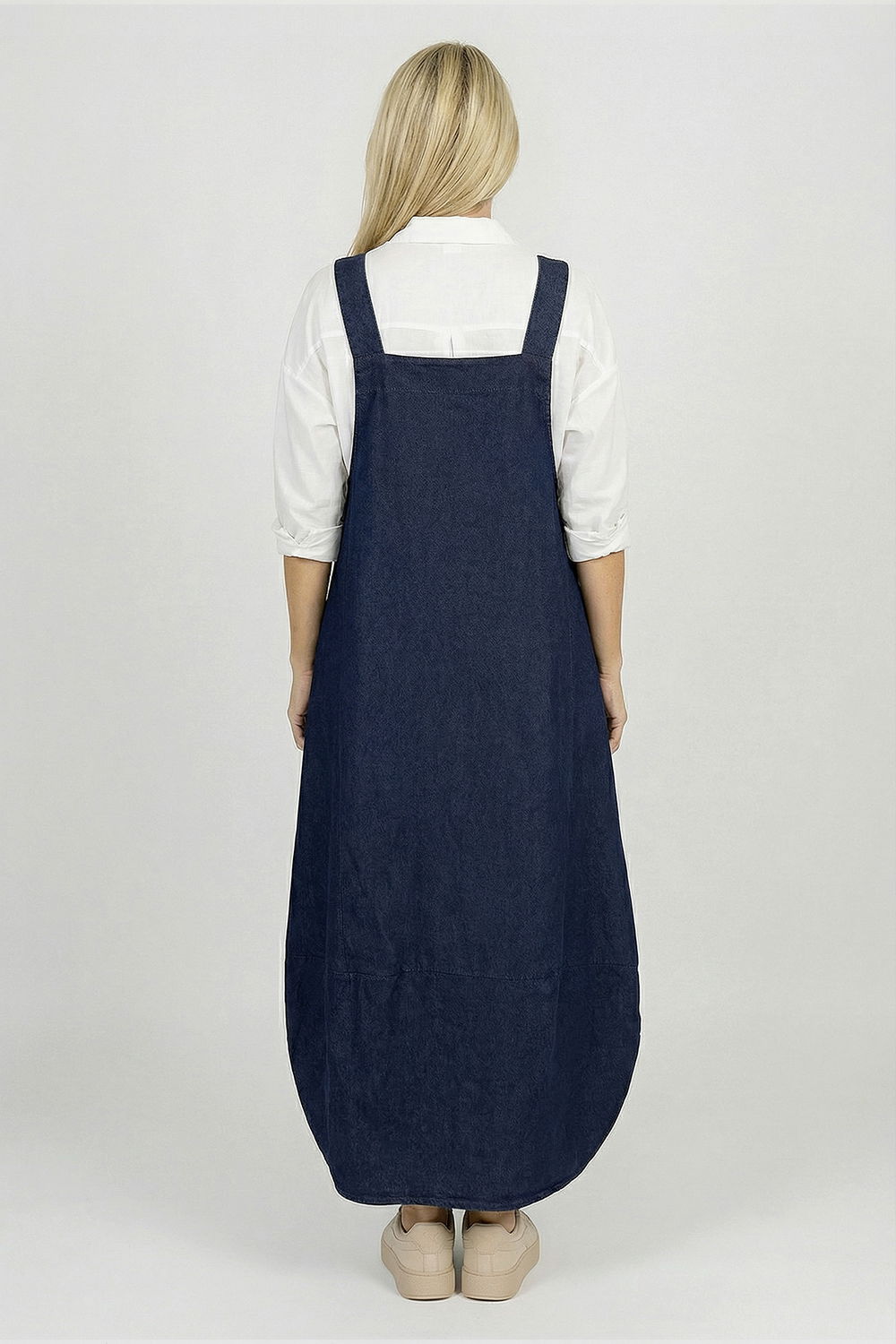 Sarafan modern din denim te ajuta sa iti creezi un look casual si chic . Realizata din denim de calitate si cu o croiala lejera, aceasta rochie lunga dispune de bretele late, reglabile nasturi metalici, care adauga o nota moderna si functionala. Are la tiv snururi reglabile care permit ajustarea lungimii rochiei si crearea unui efect bufant modern si plin de stil.