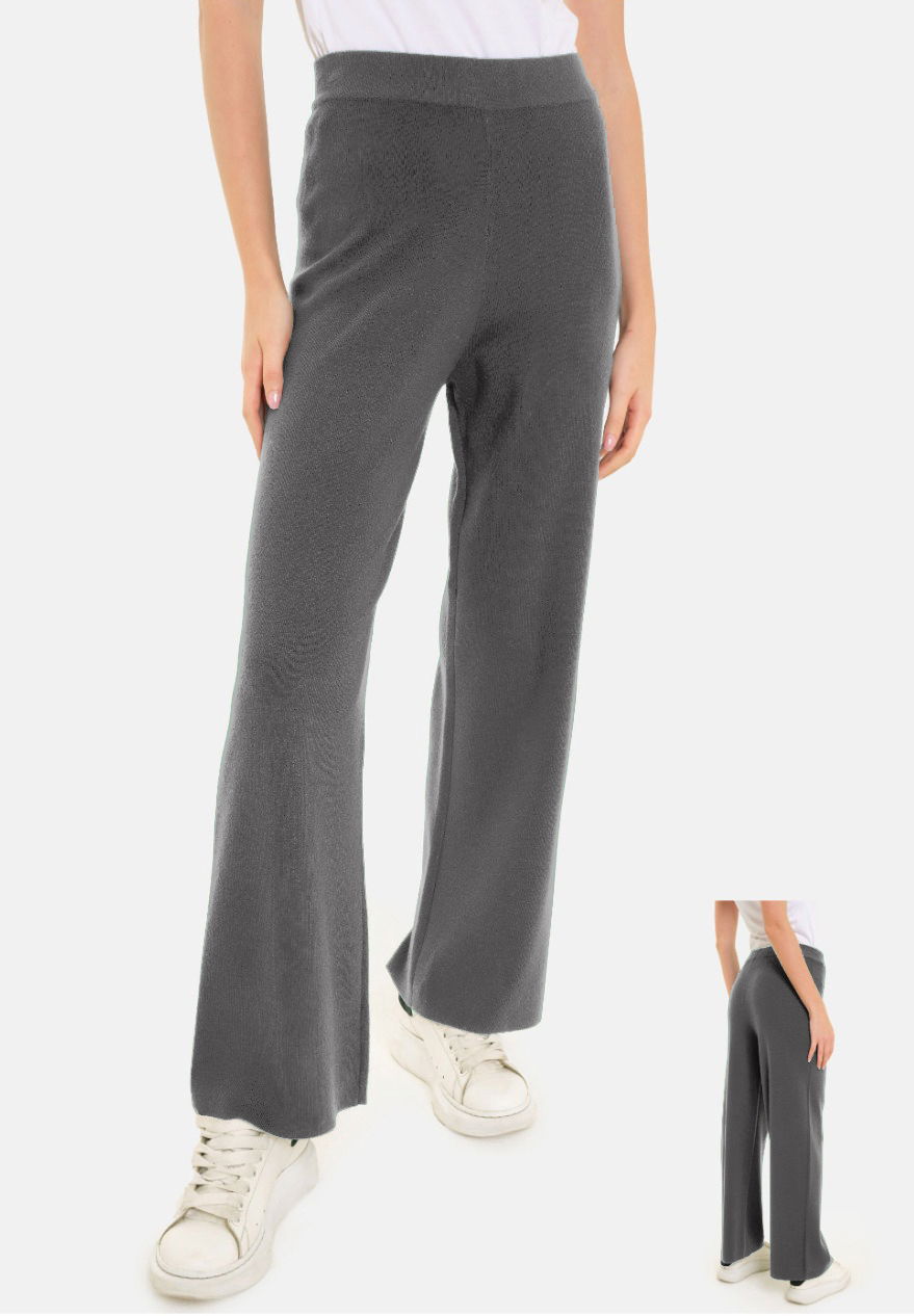 Pantaloni largi si drepti, casual, din tricotaj fin, gri