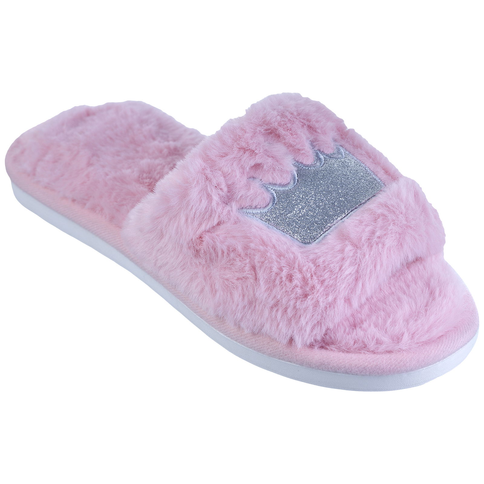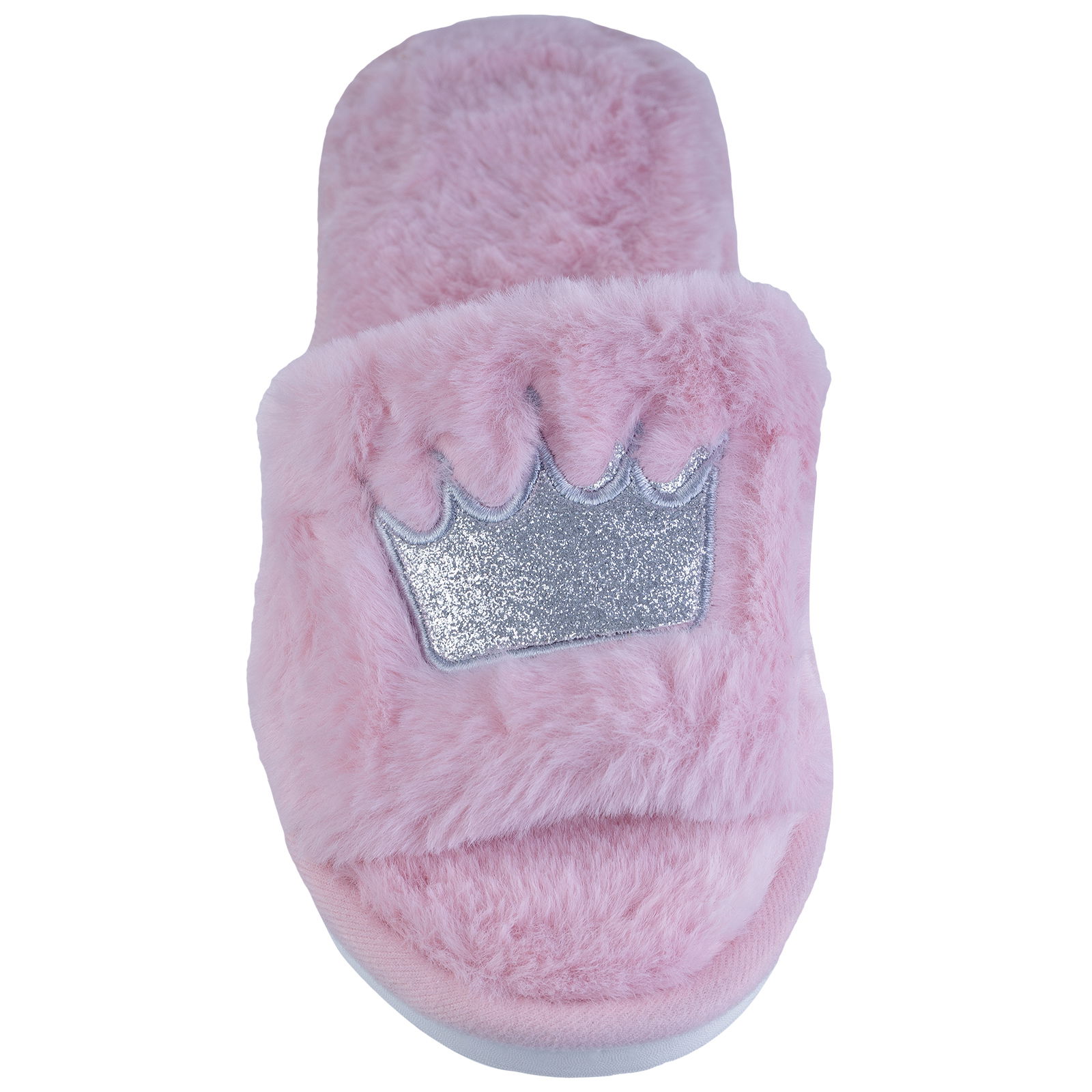 Shopika Papuci de casa roz inchis cu coronita argintie brodata