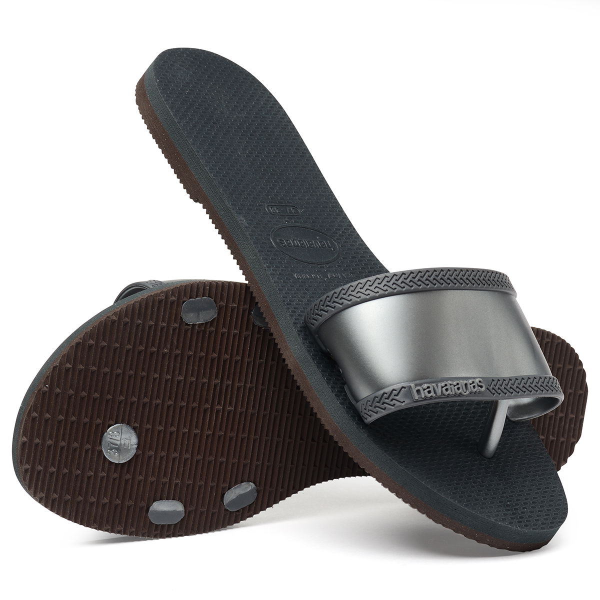 Havaianas Papuci Havaianas slim din cauciuc natural cu banda gri si negru