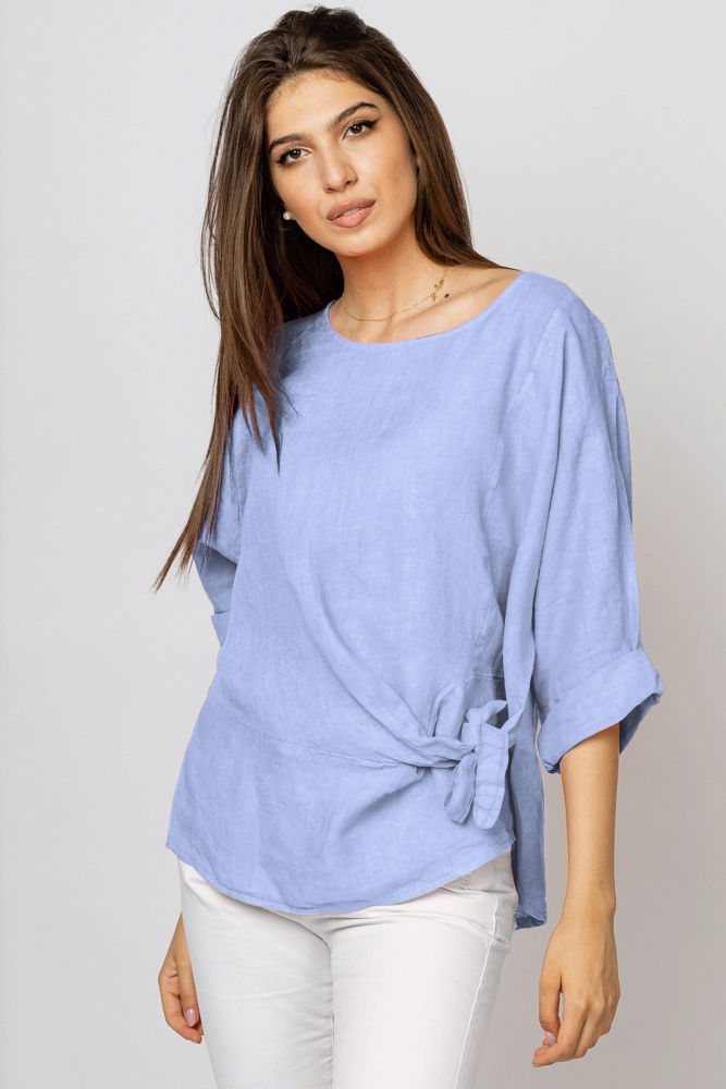 Shopika Bluza din in bleu masura mare cu nod pe talie