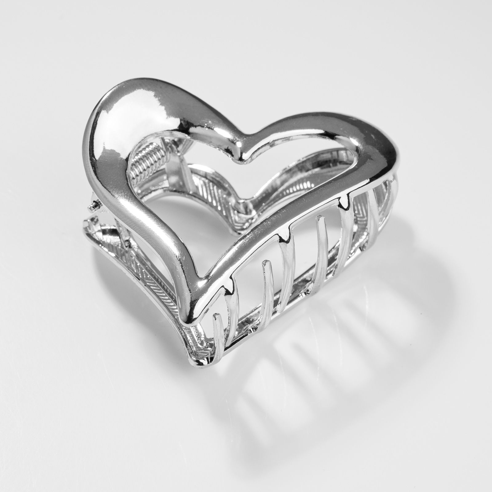 Clama de par metalica, in forma de inima, ideala pentru prinderi rapide si elegante. Realizata din metal rezistent, cu arc solid, fixeaza parul ferm fara sa-l deterioreze. Designul decupat in forma de inima aduce un plus de stil si femininitate, perfecta pentru tinute casual, office sau ocazii speciale.