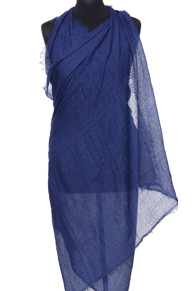 Shopika Esarfa dreptunghiulara tip pareo cu aspect creponat din vascoza, bleumarin