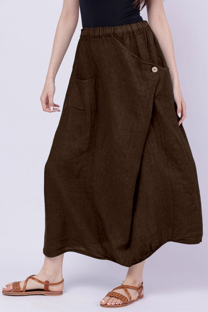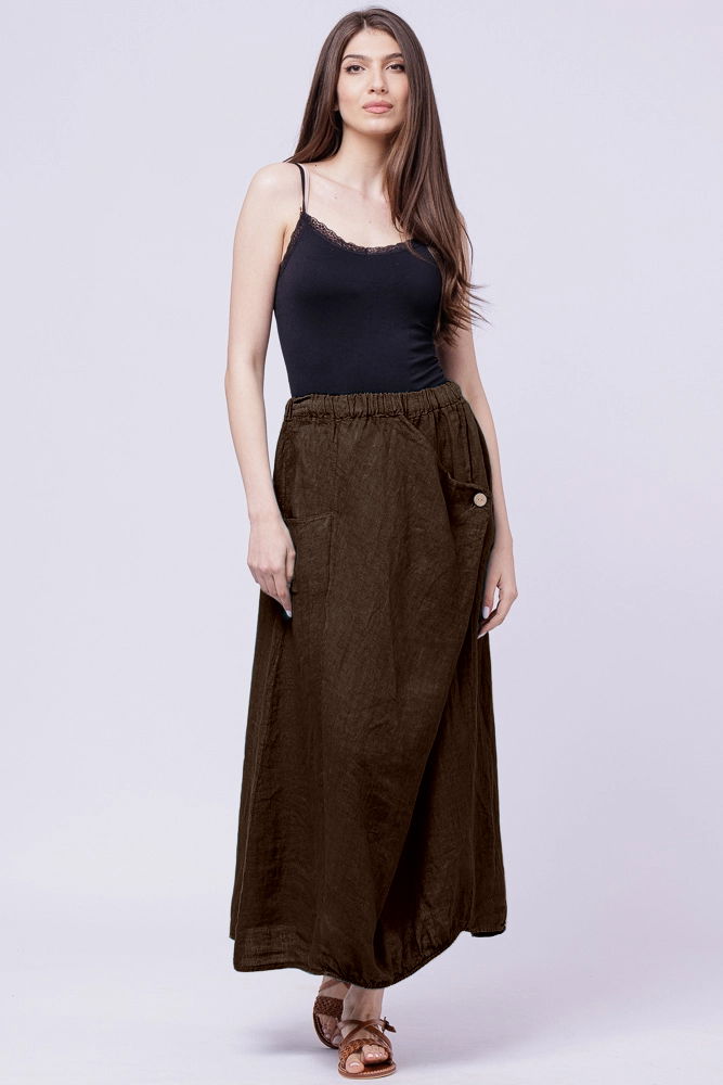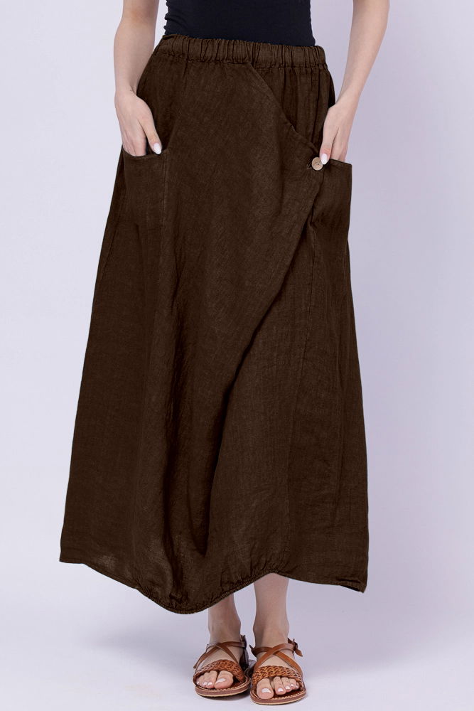 Shopika Fusta larga din in cu un colt prins, maron inchis