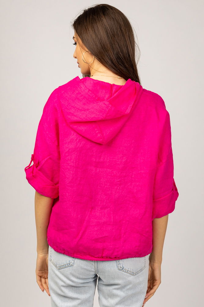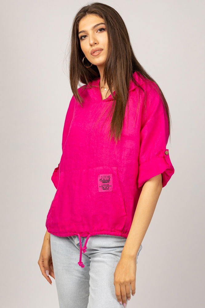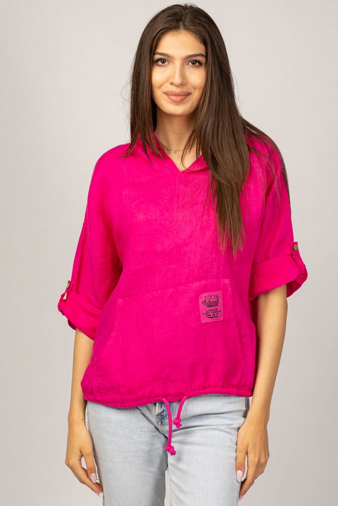 Shopika Hanorac fucsia din in cu buzunar marsupiu si gluga