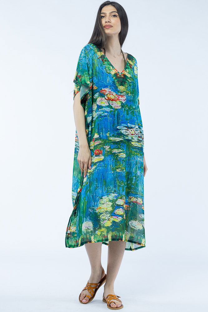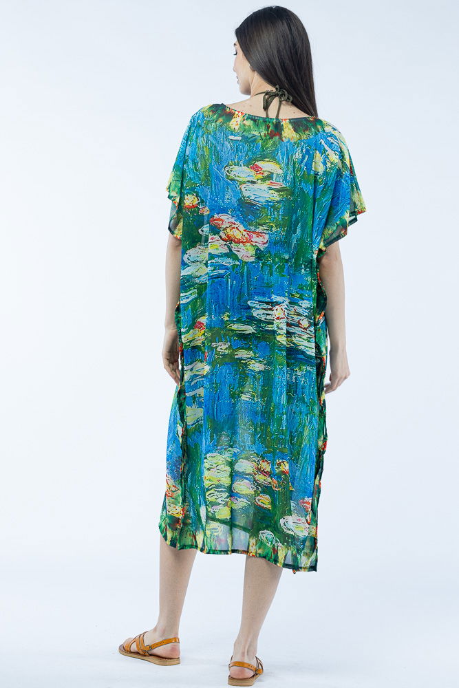 Shopika Rochie lunga de plaja tip poncho cu imprimeu dupa "Nuferii" de Claude Monet