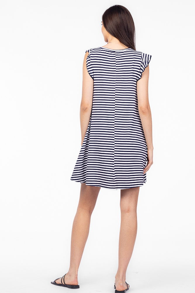 Shopika Rochie scurta A-line, din tricot de vascoza, imprimeu dungi alb-bleumarin