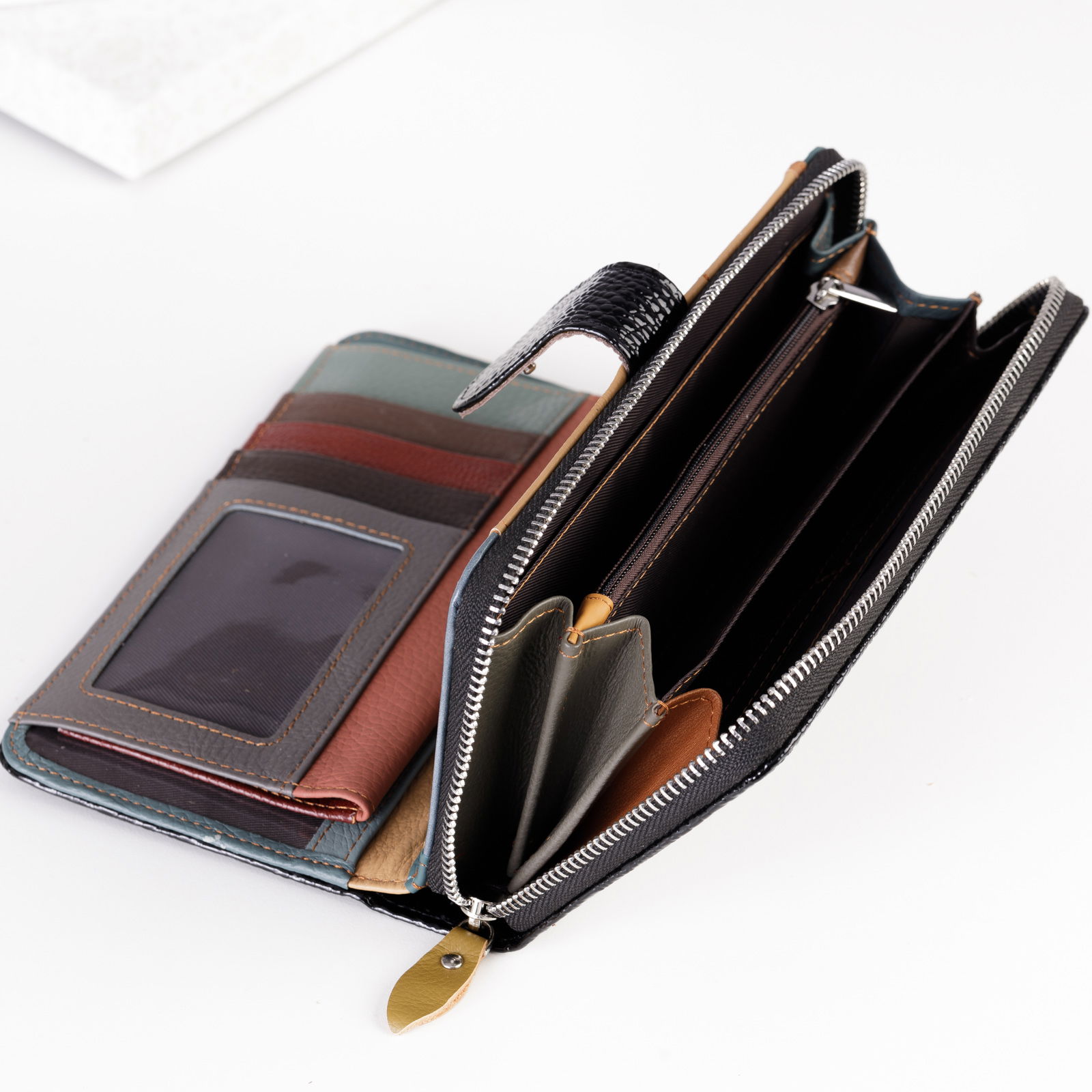 Portofelul este foarte bine compartimentat, are compartimente in care se potrivesc cartea de identitate, carnetul de conducere, cardurile, bancnotele si unul cu fermoar pentru monede.