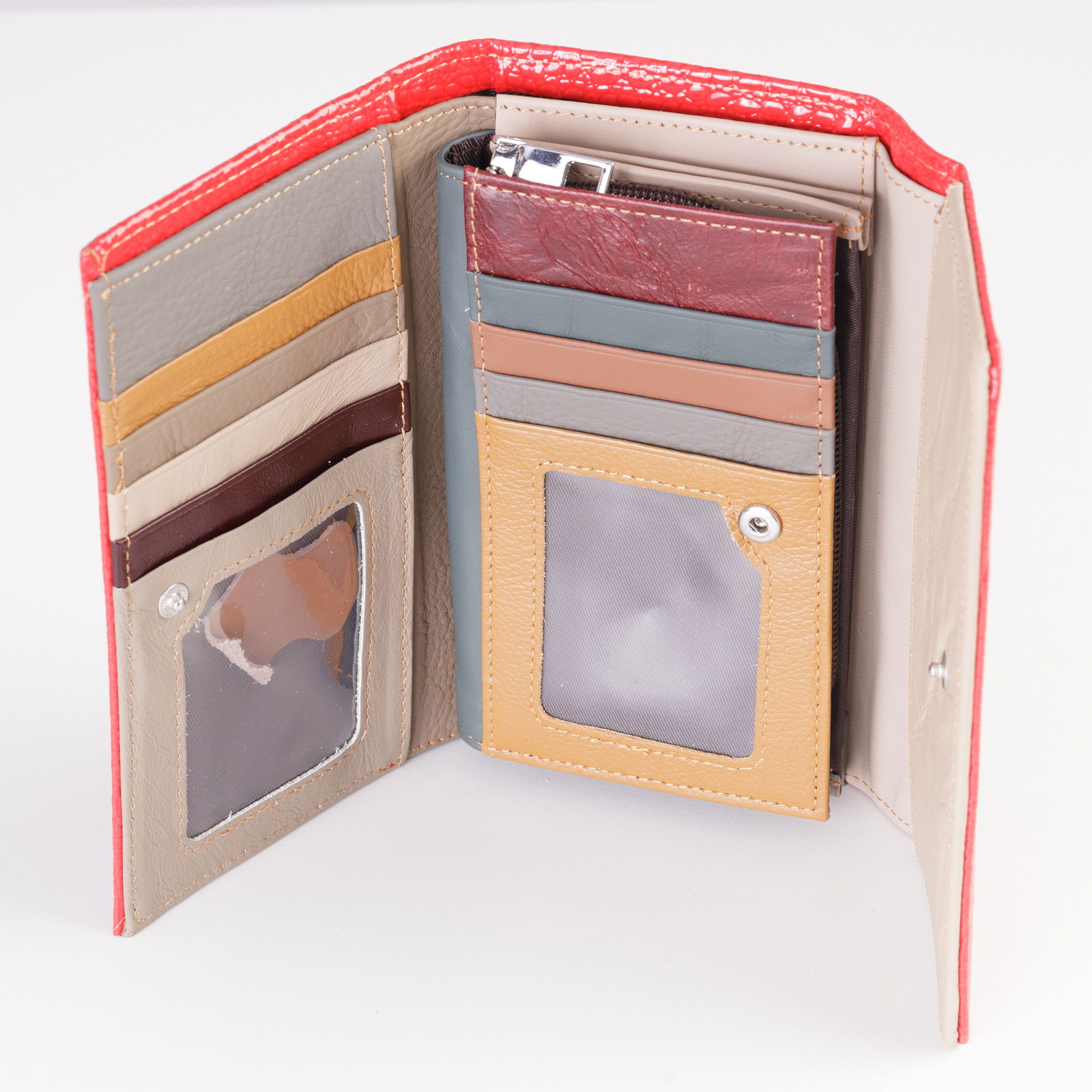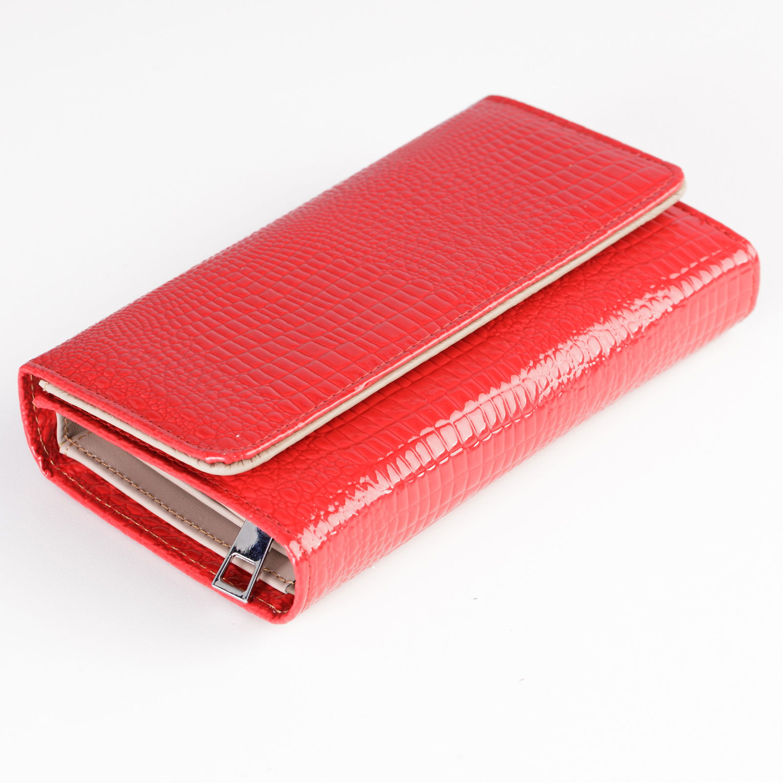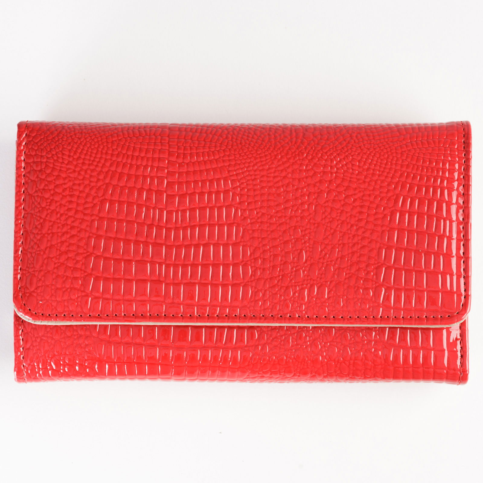 Portofel din piele naturala lucioasa, cu aspect piele de sarpe si prindere cu capsa, rosu