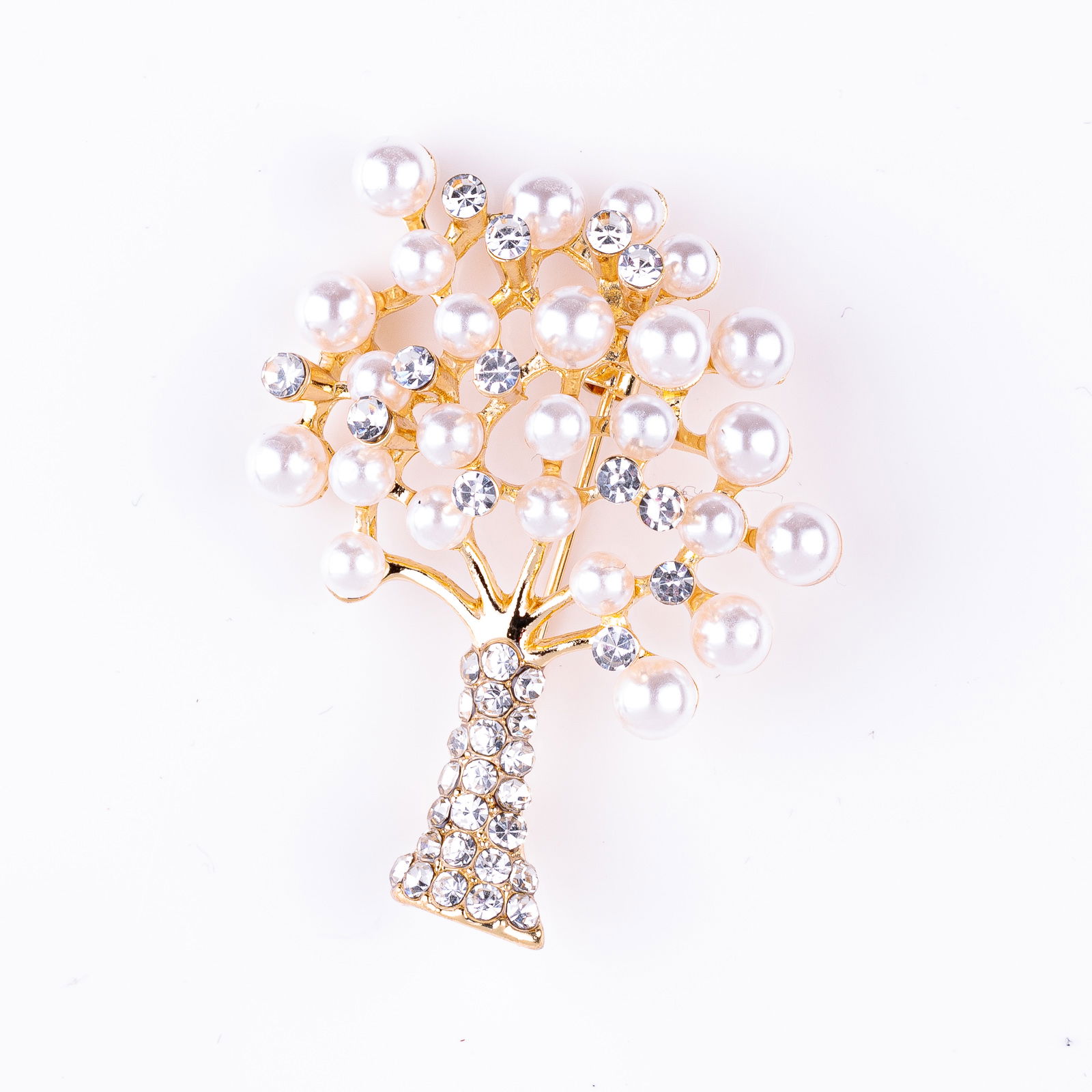 Shopika Brosa metalica aurie Pomul Vietii cu pietricele argintii si perlute sintetice