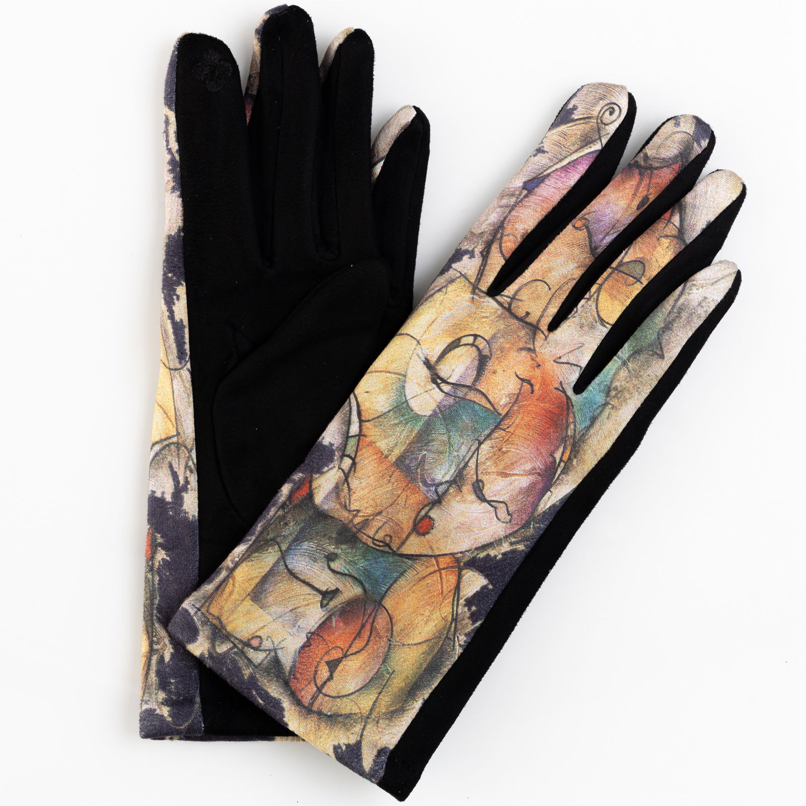 Manusi dama imprimeu pictural abstract pe fond negru, material catifelat