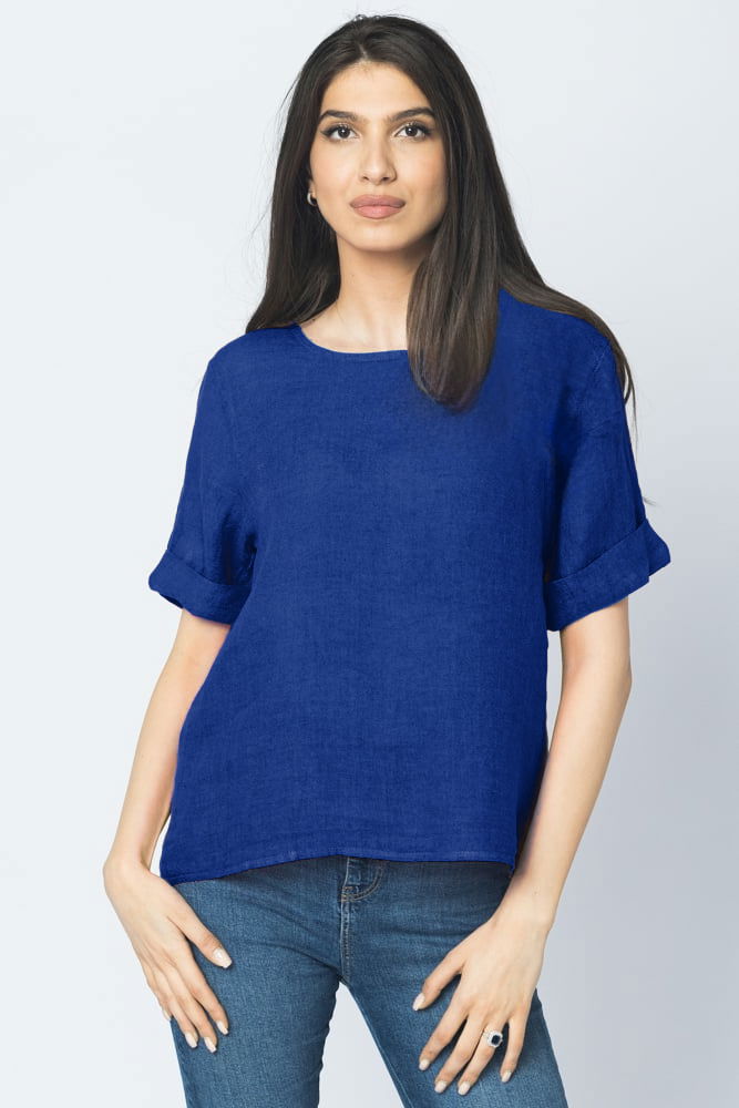 Shopika Bluza din in albastru electric cu nasturi pe spate
