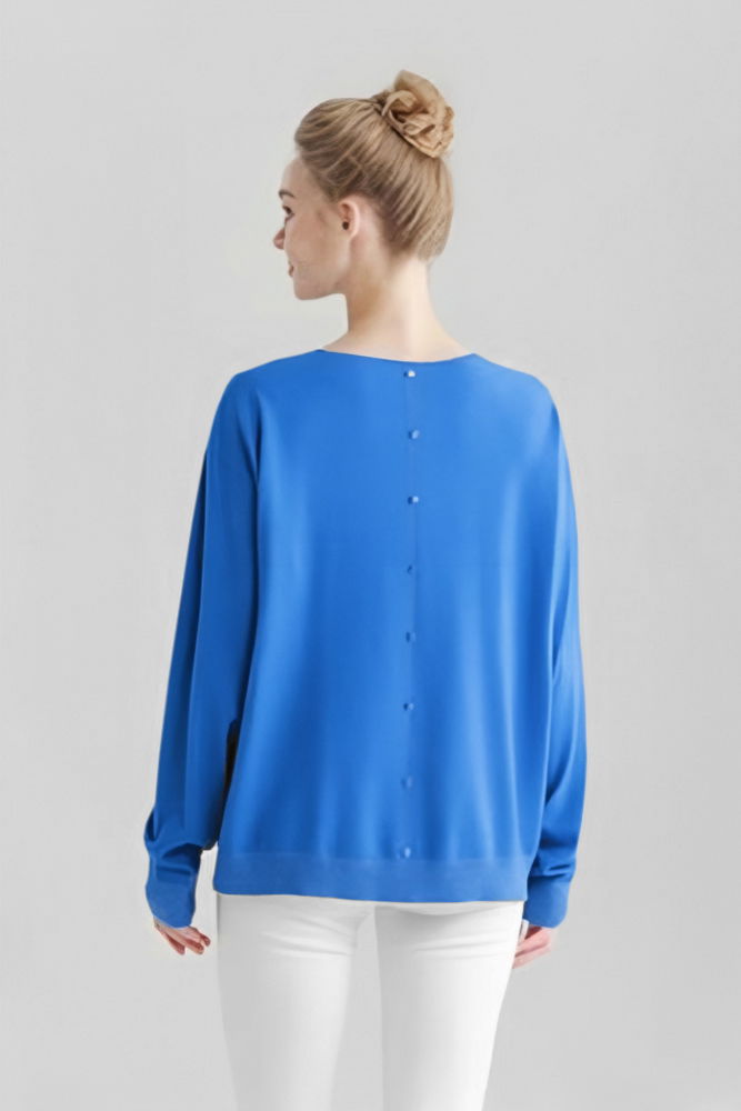 Shopika Pulover cu detalii lurex si nasturei pe spate, albastru