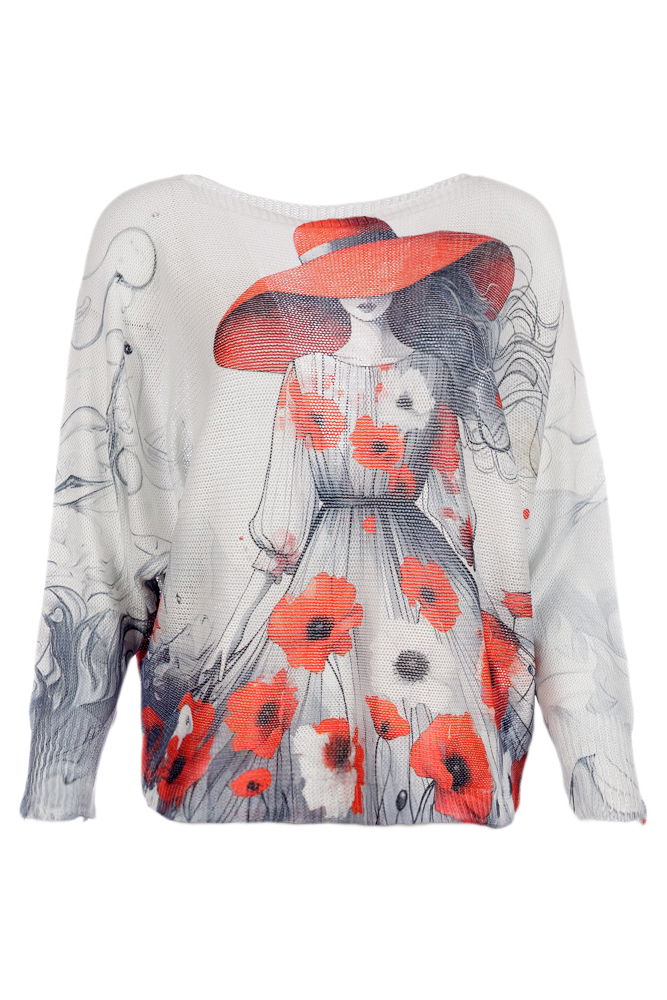 Shopika Bluza cu maneca lunga fluture si imprimeu fata cu palarie rosie si maci