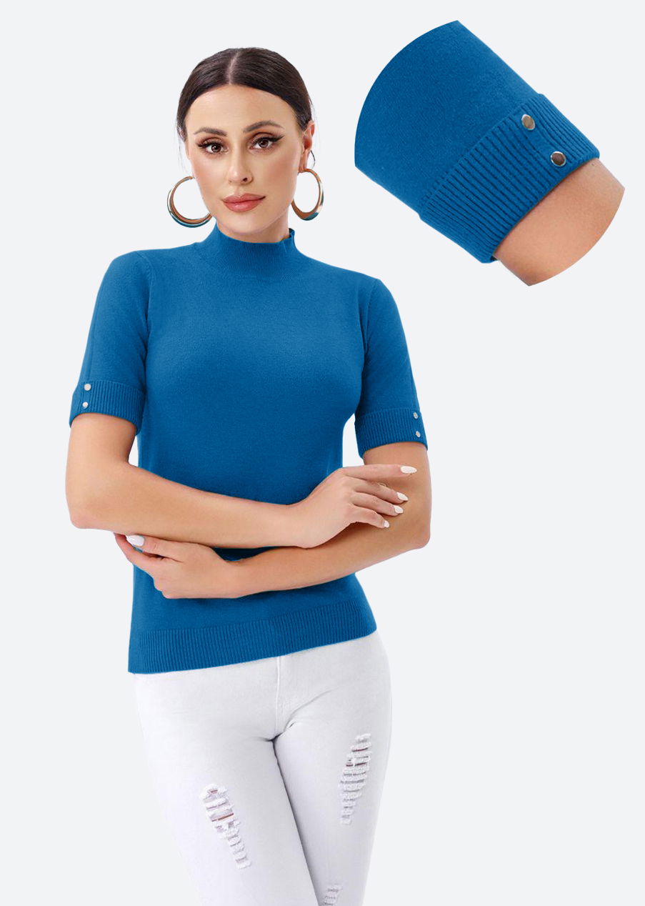 Helanca pulover cu maneca scurta, nasturei metalici si guler scurt, albastra