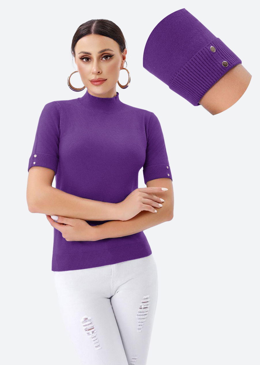 Helanca pulover cu maneca scurta, nasturei metalici si guler scurt, mov