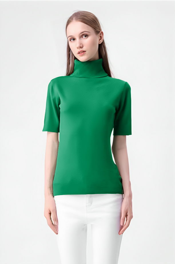 Helanca pulover cu maneca scurta si guler inalt, verde