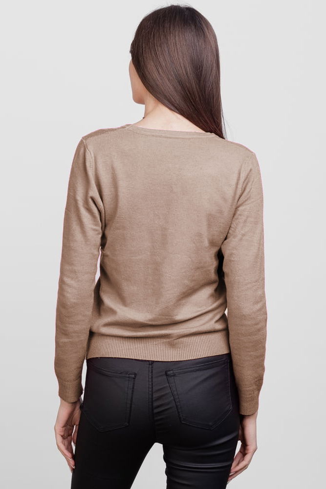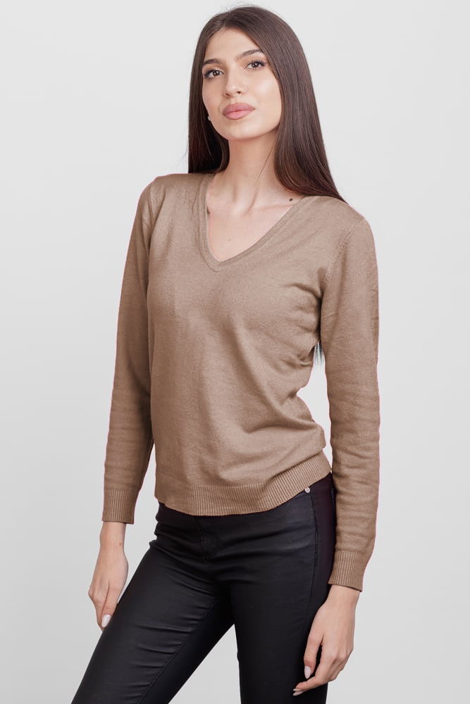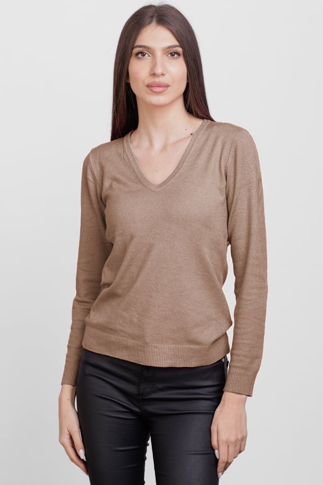 Shopika Pulover cu decolteu V, din vascoza, bej inchis