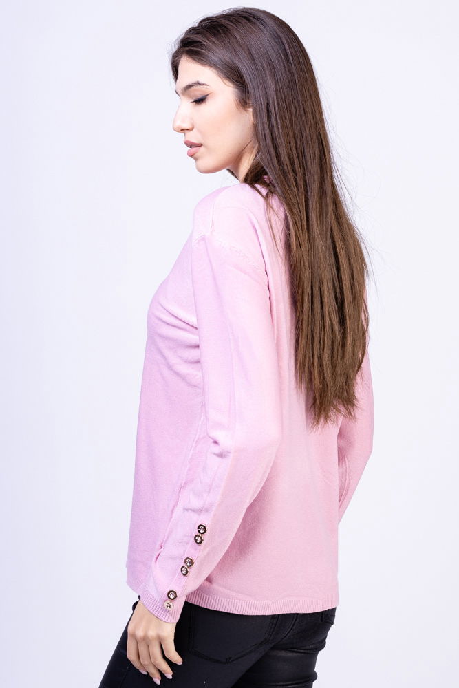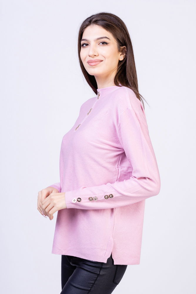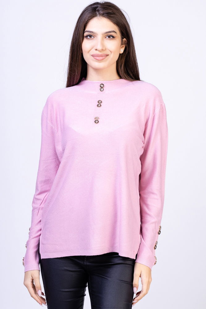 Puloverul este dintr-un tricotaj fin si placut la atingere, potrivit pentru a fi purtat in sezonul rece.