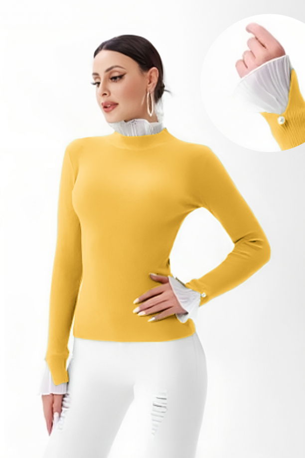 Pulover-ul este din tricotaj fin si placut la atingere, mulat pe corp si este potrivit pentru a fi purtata in sezonul rece.
