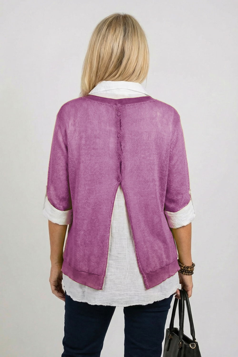 • Bluza este despicata la spate si are 4 nasturi