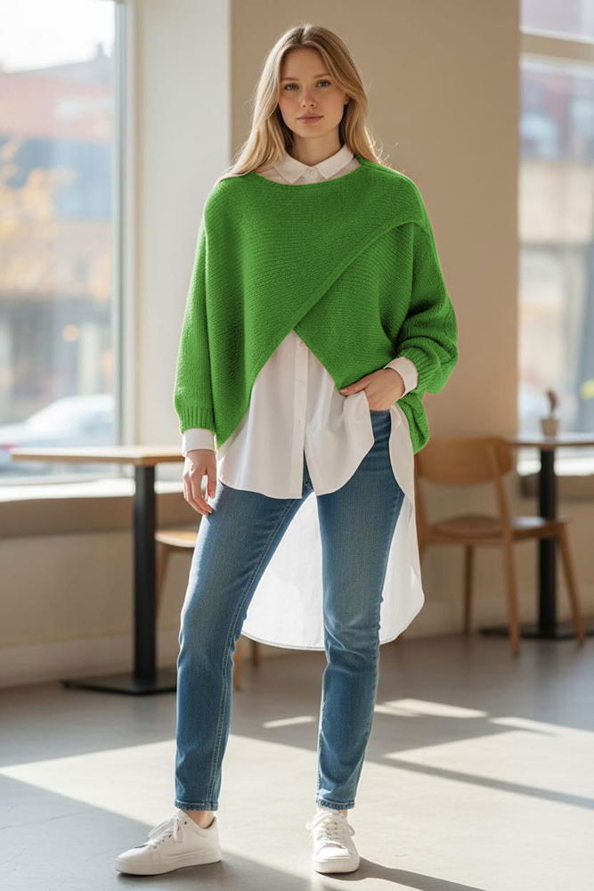 Este ușor de suprapus peste cămăși, topuri sau rochii, devenind piesa statement care transformă instant orice ținută casual într-una fresh și actuală. O alegere excelentă pentru zilele răcoroase, cafenea, birou sau plimbări urbane.