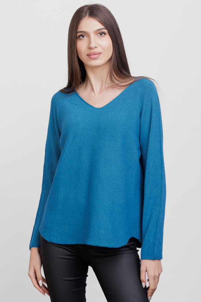 Shopika Pulover versatil cu decolteu V, din vascoza, turcoaz