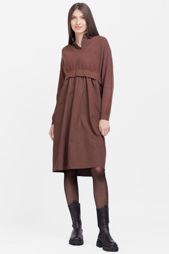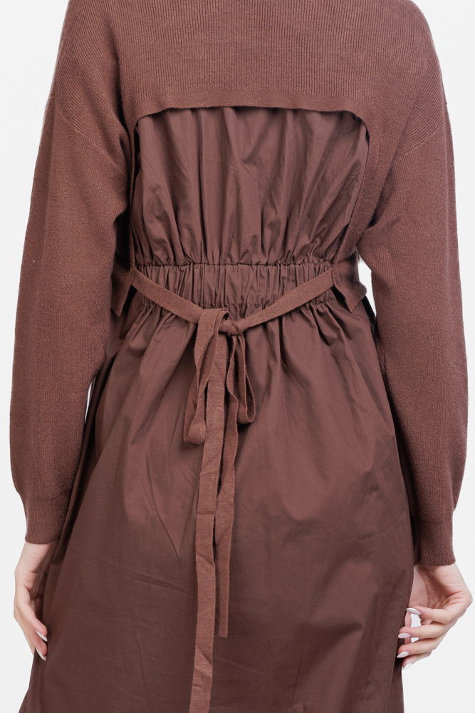 Rochie camasa din poplin de bumbac cu pulover angora, maro