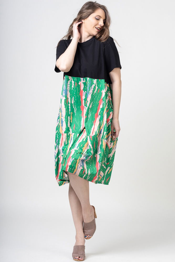 Rochie lalea cu bust negru si imprimeu predominant verde