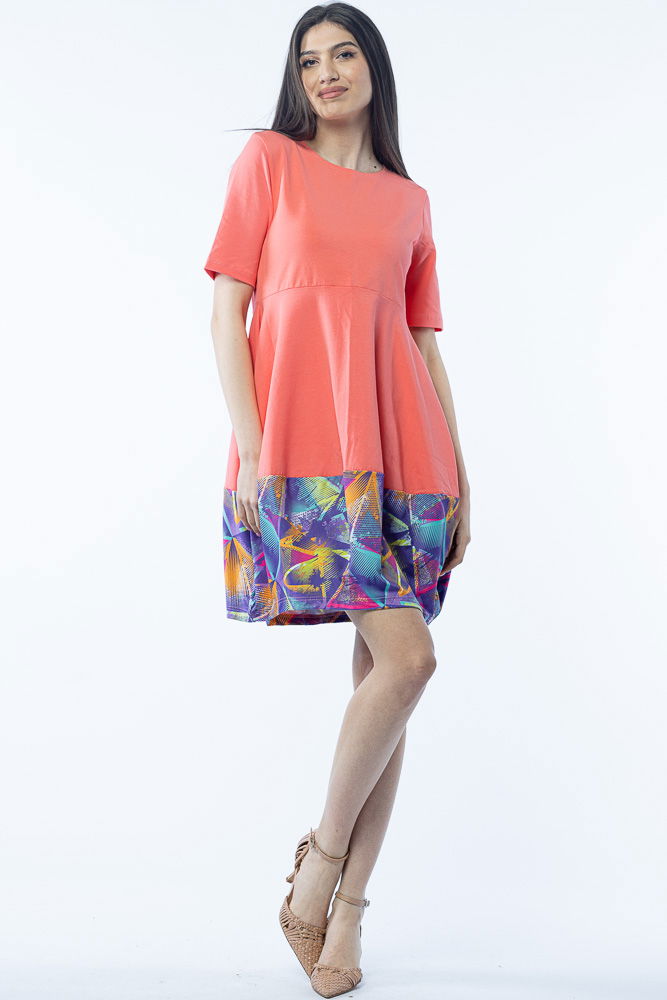 Pierino Rochie lalea din bumbac corai, cu imprimeu la poale
