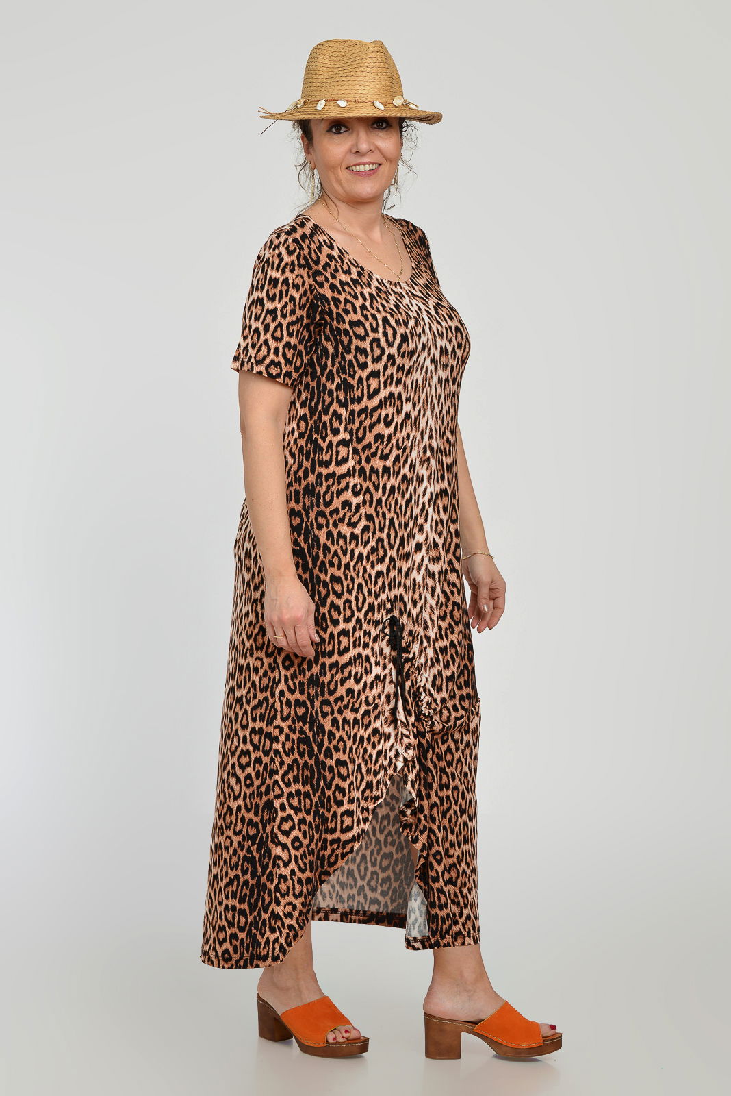 Pierino Rochie lunga A-line din tricot de vascoza cu siret la poale, imprimeu animal print