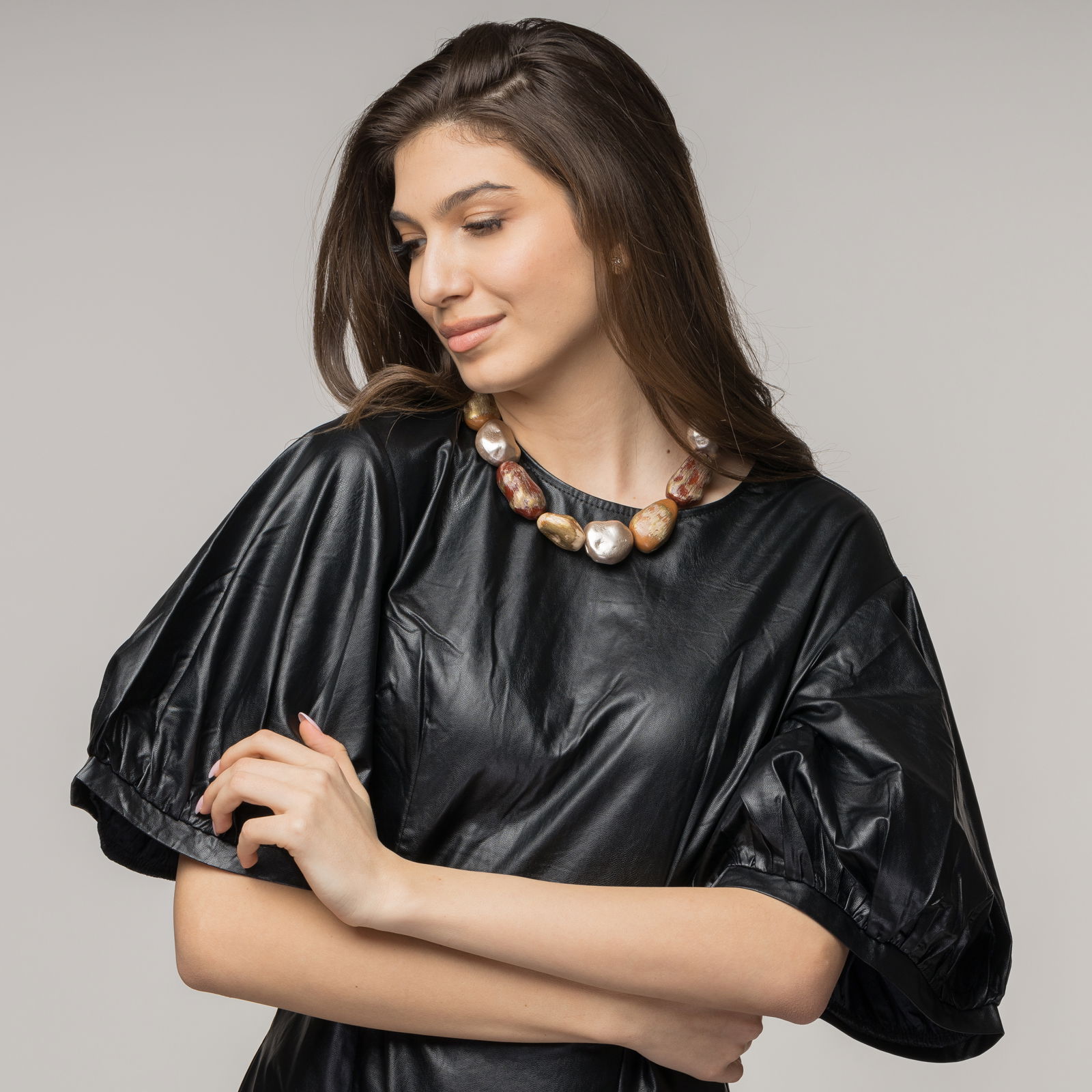 - Are decolteu rotund la baza gatului iar pe spte se deschide in V