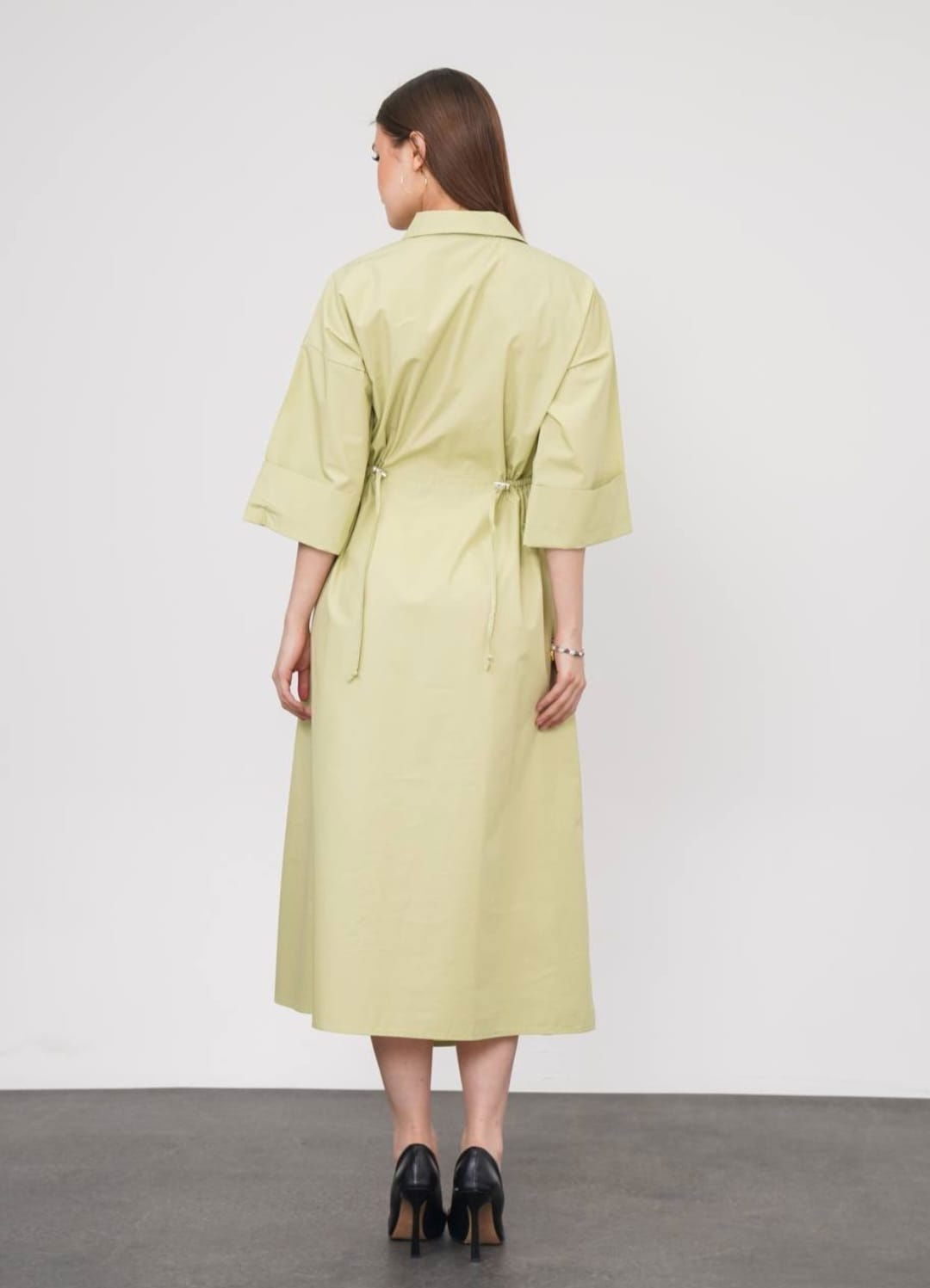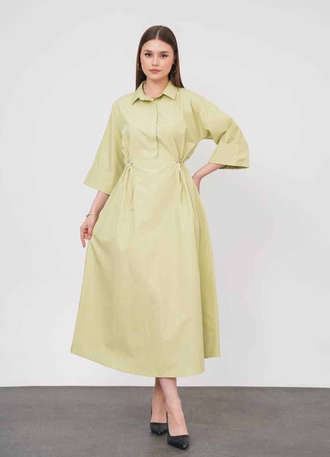 Rochie lunga tip camasa din poplin satinat de bumbac, verde menta