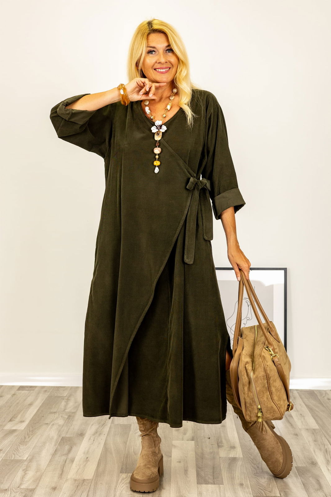 Shopika Rochie petrecuta oversize A-line, din catifea reiata, kaki