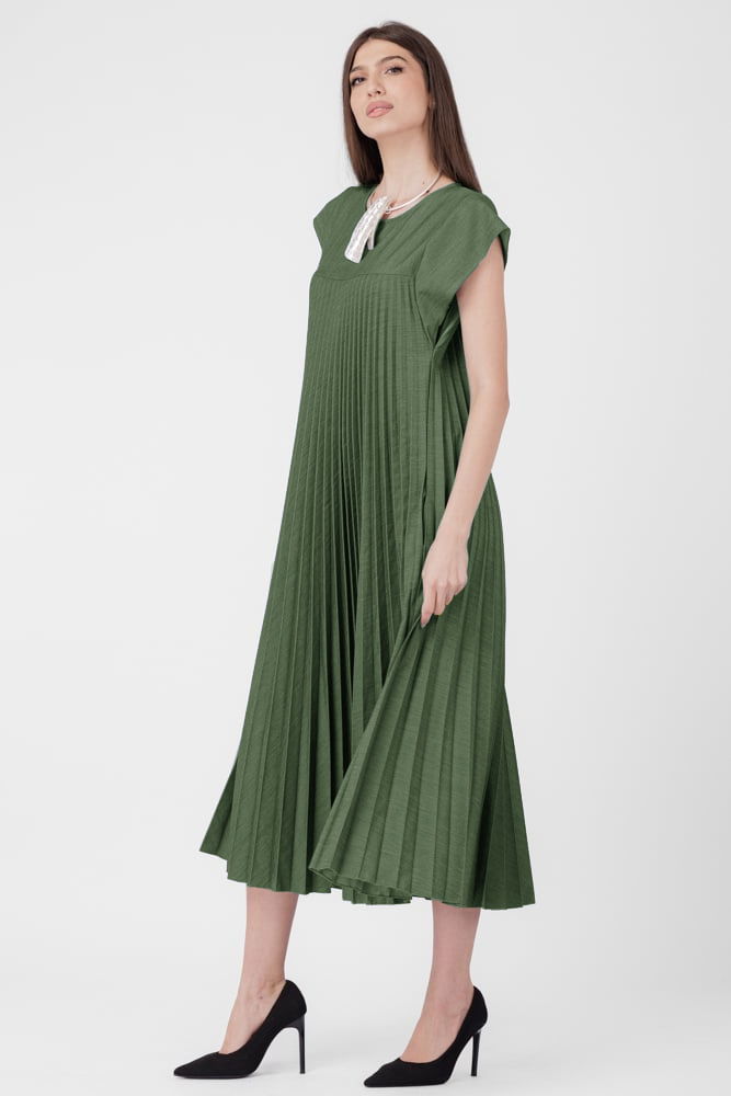 Shopika Rochie plisata A-line lunga, material fin si usor creponat, kaki