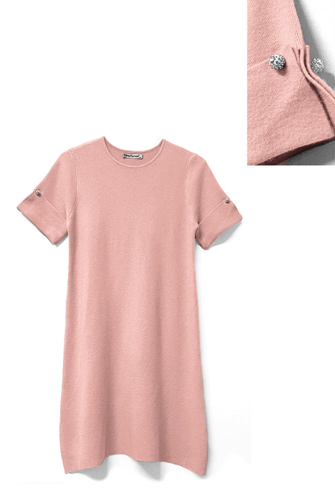 Shopika Rochie scurta A-line tricotata, cu maneca scurta si nasture decorativ, roz