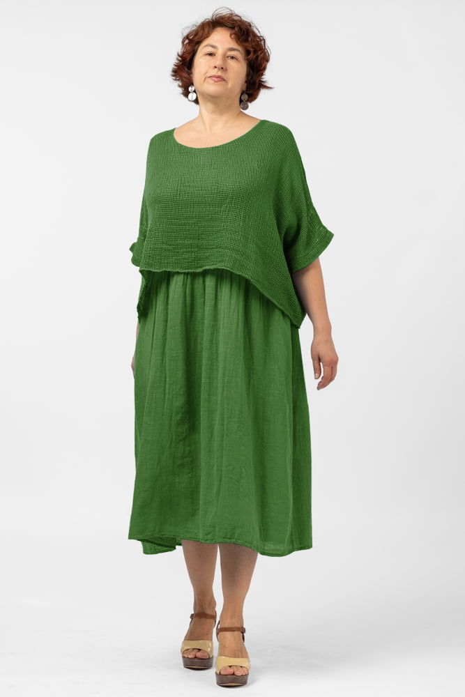 Shopika Rochie suprapusa cu bluza plasa, din bumbac, verde oliv