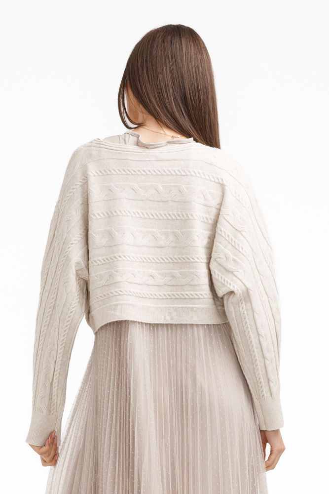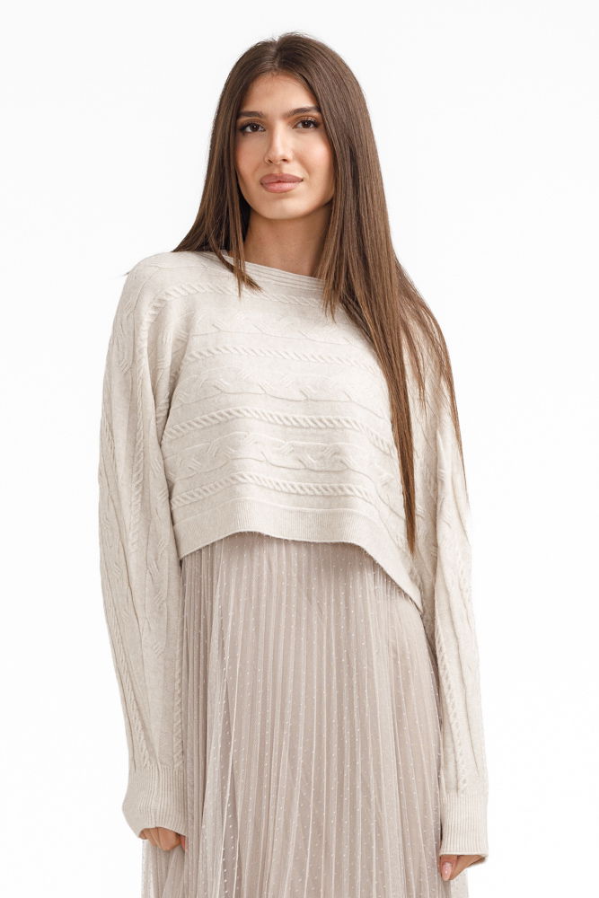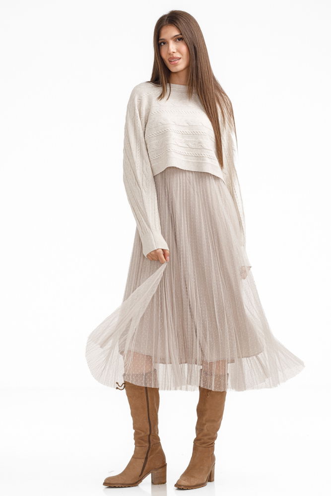 Rochie suprapusa din tulle cu bulinute cu puloveras cu model, bej deschis